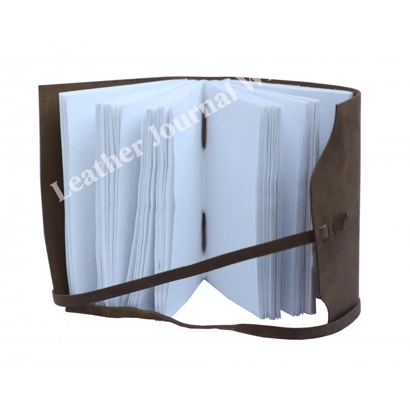 HANDMADE RECYCLED COTTON PAPER : 100% handmade leather books are complemented with a durable thread and a bound-to-last hand-sewn binding, adding to the book’s decorative appeal - A self-leather wrap tie keeps your treasured writings under cover - Unlike many other leather notebooks with raw edges, our journal leather has an old-world feel with burnished finish.