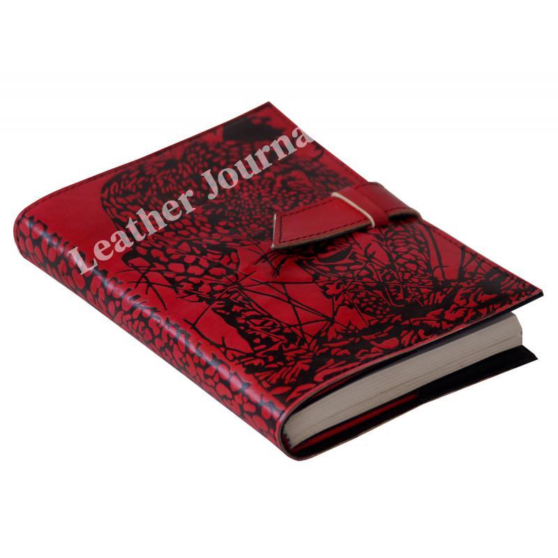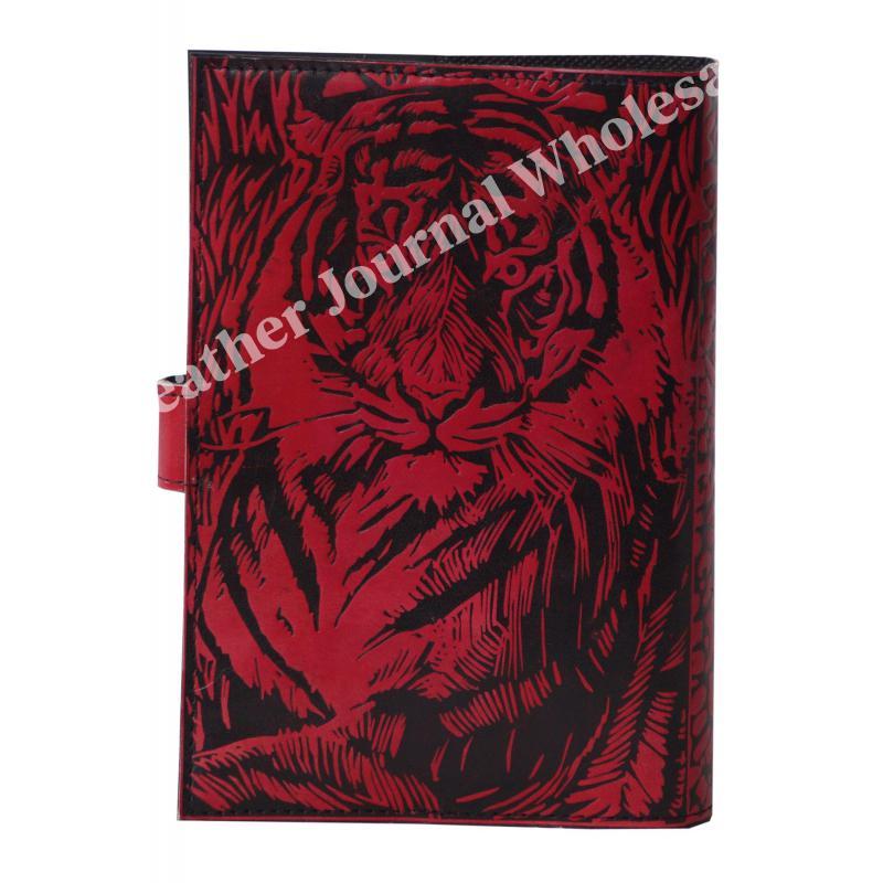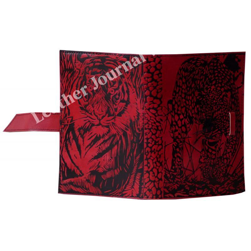 Handmade Vintage Leather Journal Genuine Red With Black Book Of Shadow Tiger Journal For Men's Organizer Day Planner Notebook