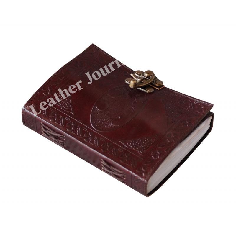 路Handcrafted Out Of Indian Leather With 120 Pages Of Recycled Indian Cotton Paper Book of Shadow Journal Diary With One C Lock Blank Diary