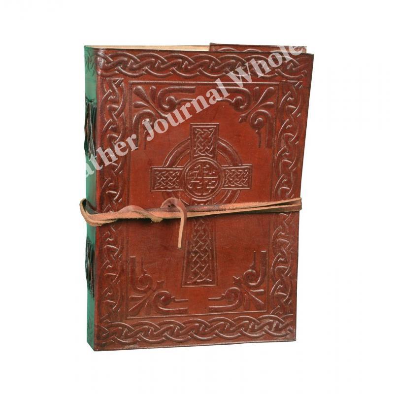 Handmade cotton paper Leather journal - Celtic Weave Cross diary unlined Paper Note book Journal