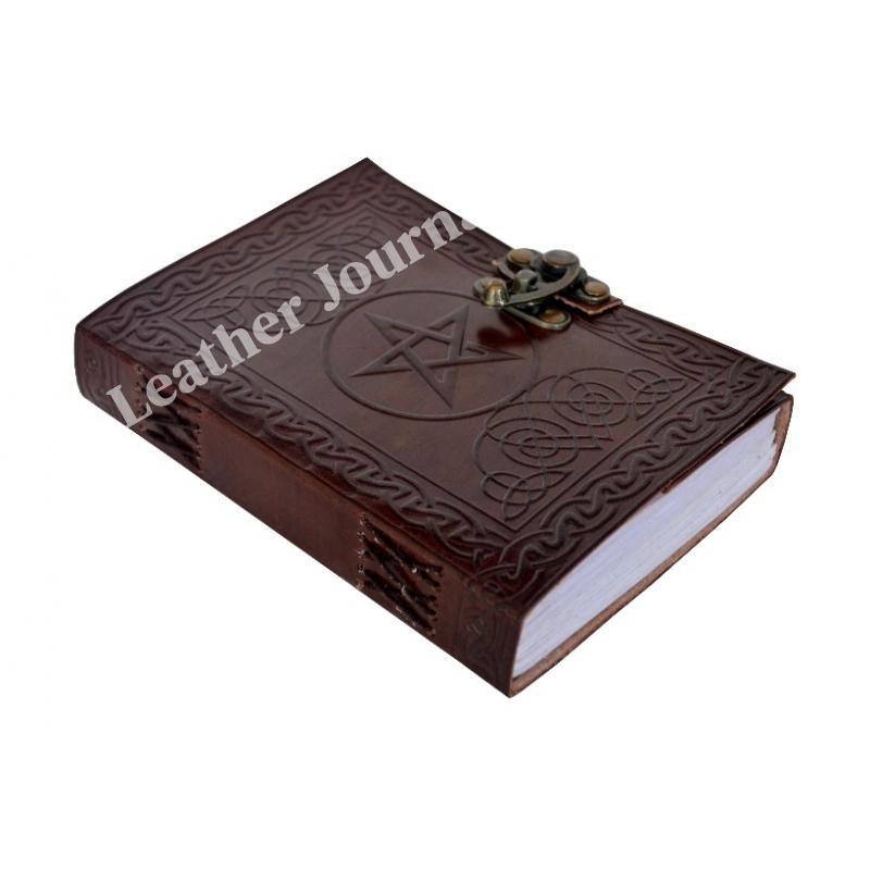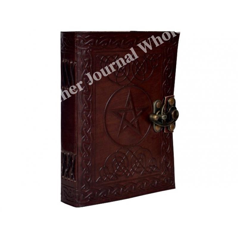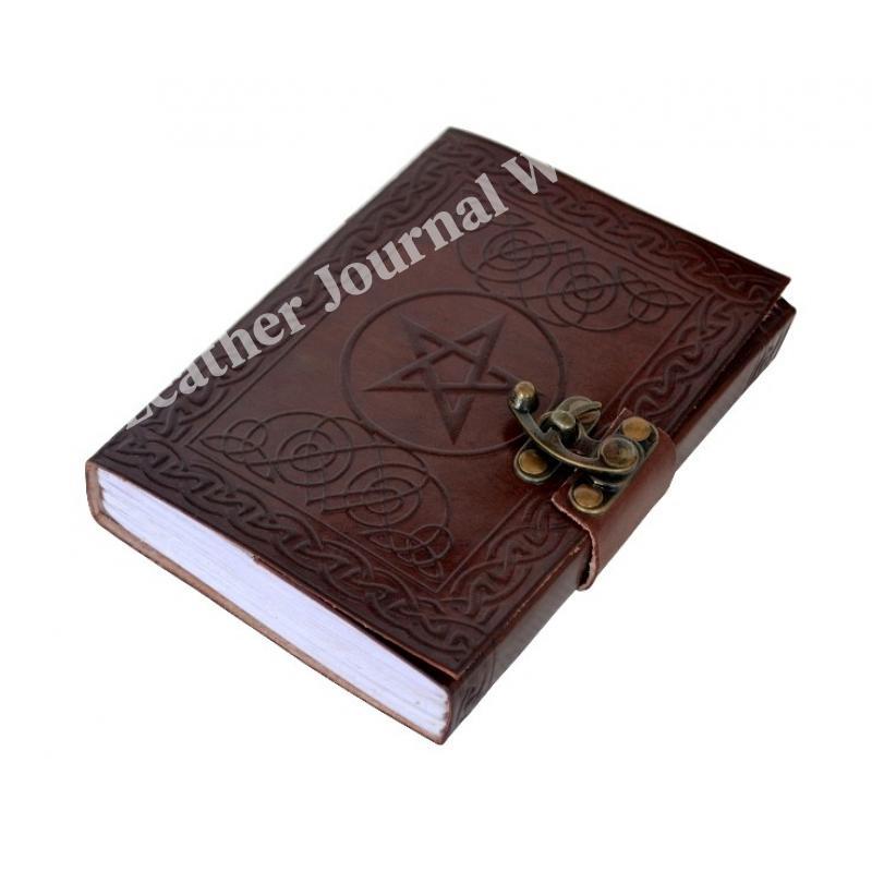 路Handcrafted out of Indian leather with 120 pages of recycled Indian cotton paper Pentagram Embossed Leather Journal Diary With one C Lock Blank Diary