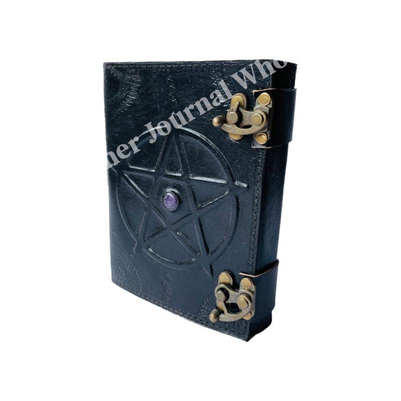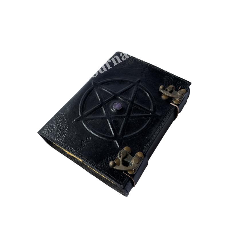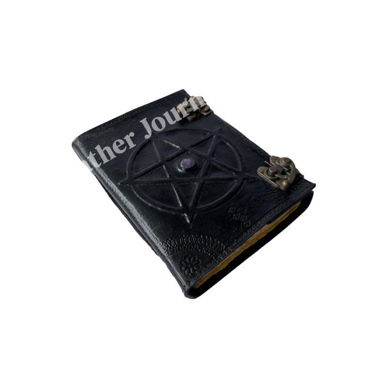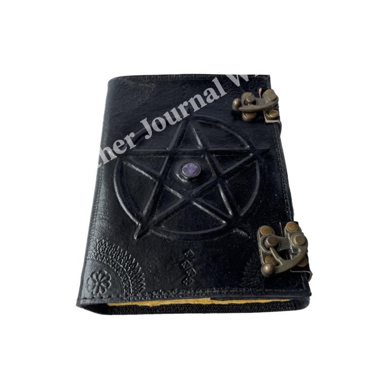 Handmade leather journal Drawing Pentagram Stone vintage Book C lock blank notebook Deckle Pages Custom Sketchbook