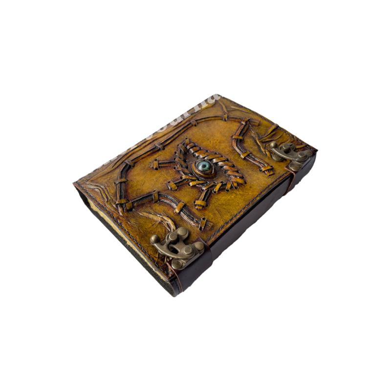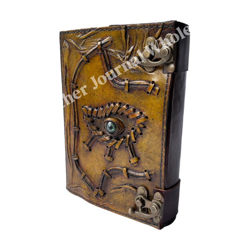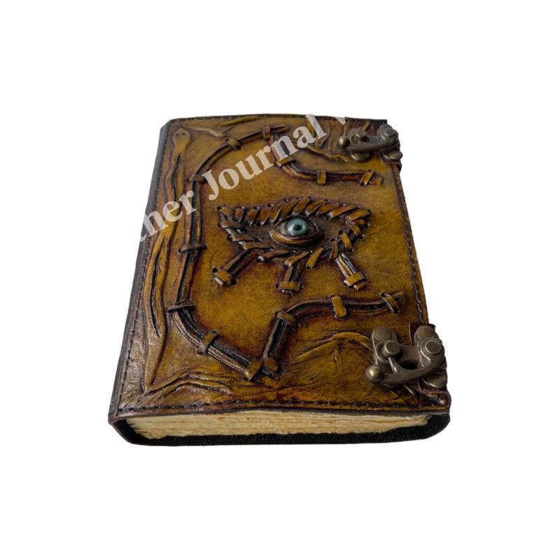 Hocus Pocus Book Of Spells Eye vintage leather book Celtic wiccan journals for writing Charcoal handmade deckle Art paper