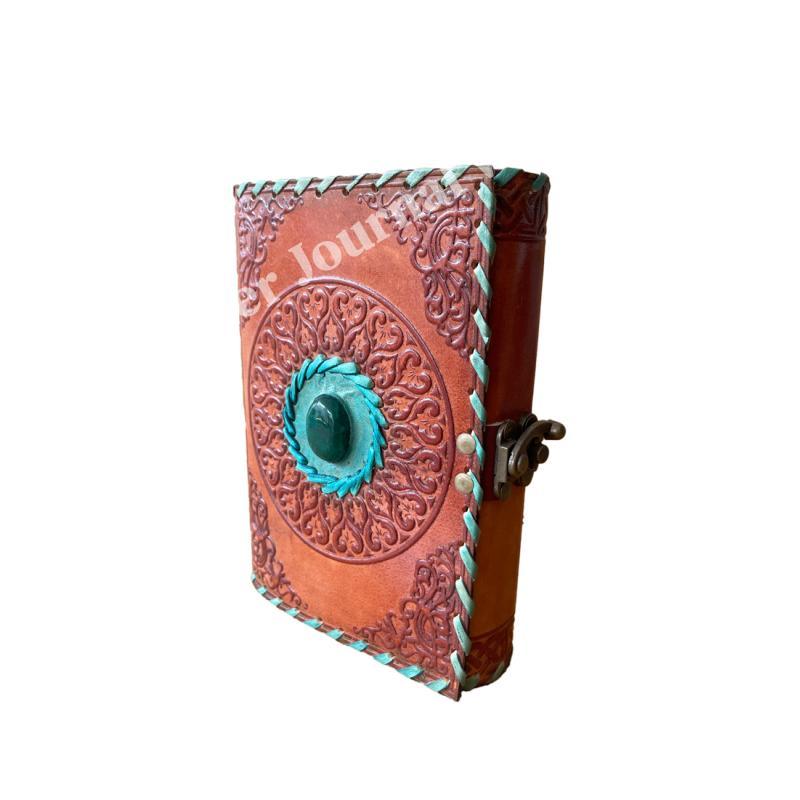 Indian journal notebook handmade leather journal with traditional design and stone metal closure Meditation Self-Care Planner