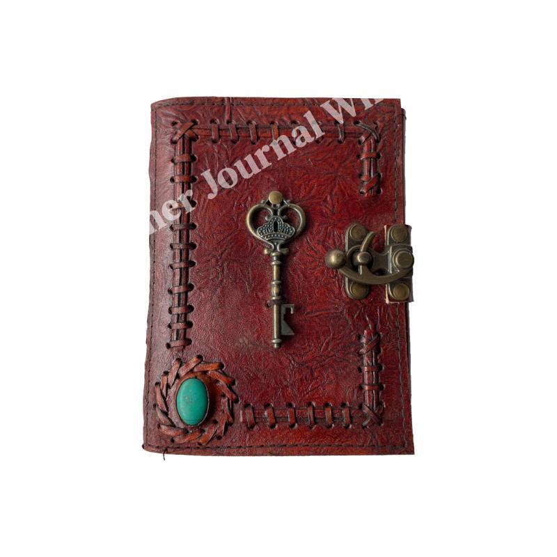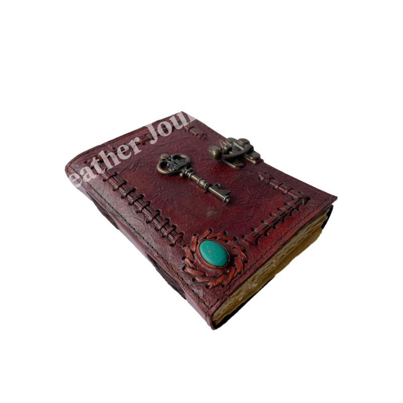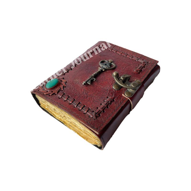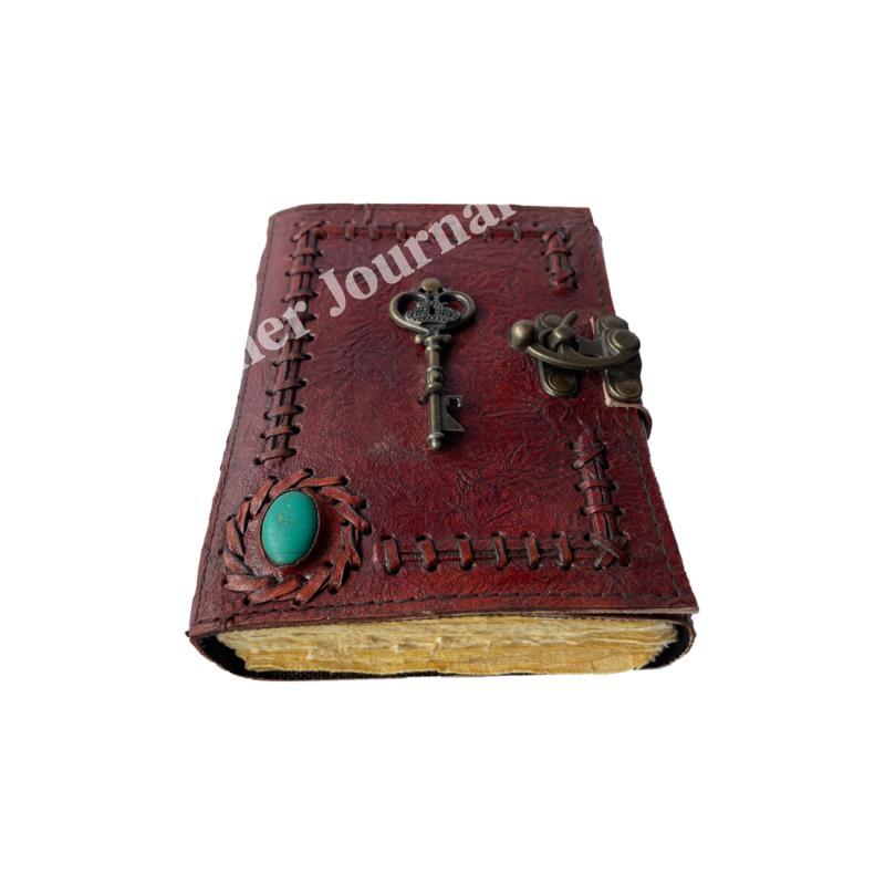 Key Vintage Leather Journal Book of Charmed Spell Wiccan Journals Antique Handmade Deckle Edge Paper Brown 200 Pages Sketchbook