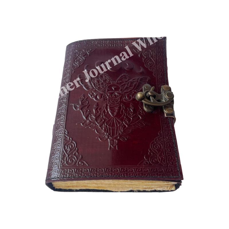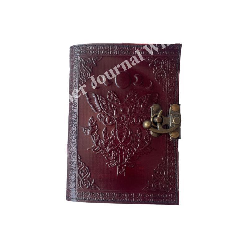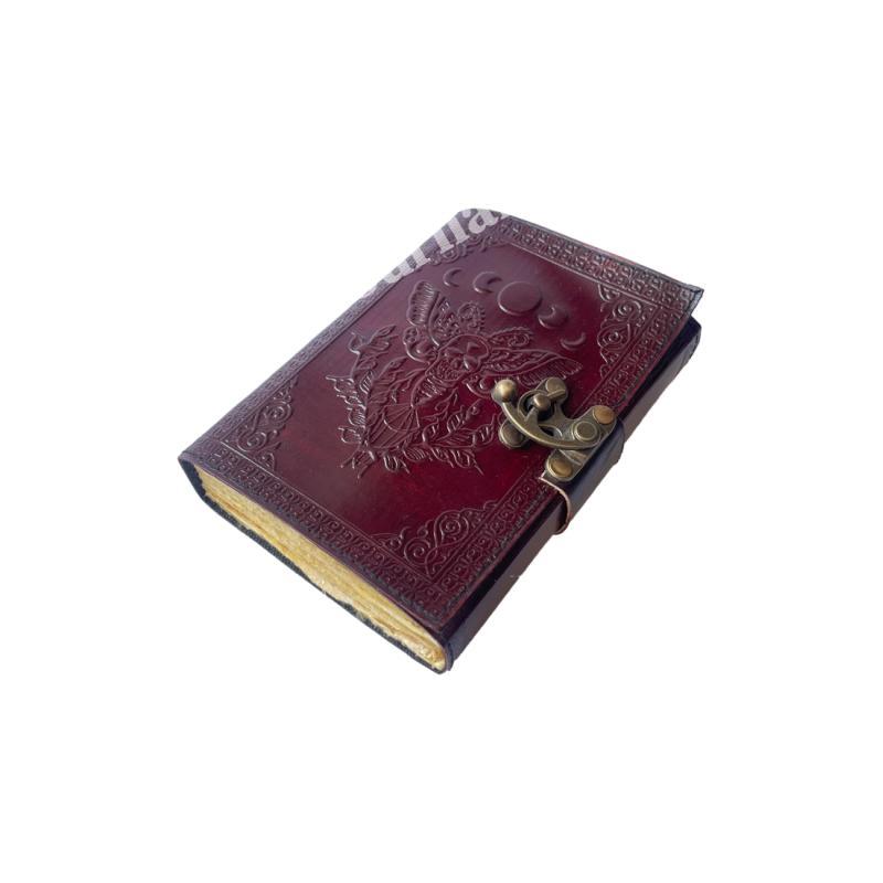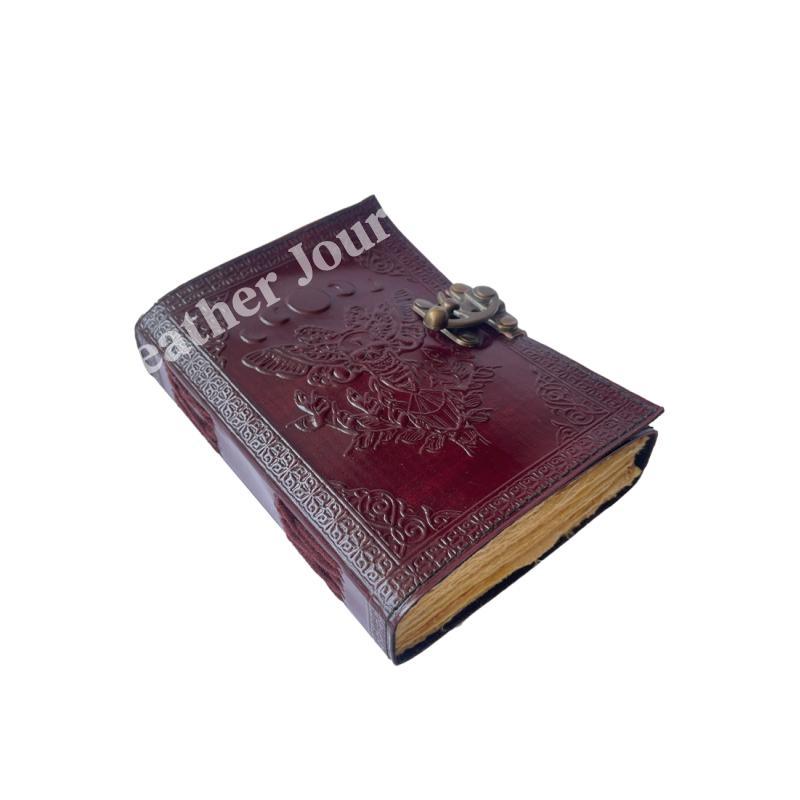 Leather Handmade Deckle Edge Paper Brown Antique Book of Spell Charmed Sun Moon Moth Embossed Vintage Sketchbook Planner