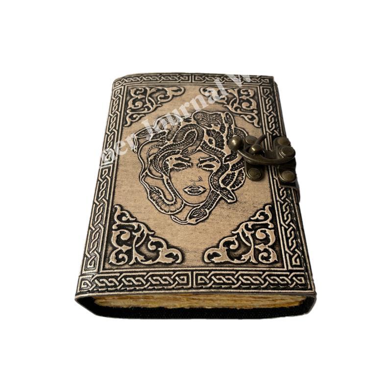 Leather Journal Antique Medusa Vintage Wiccan Travel Notebook Diary Moon Leather Bound Daily Notepads for Men womenDiary Deckle Art Paper Vintage Leather Bound Daily C Lock Book Of Shadows Notepad