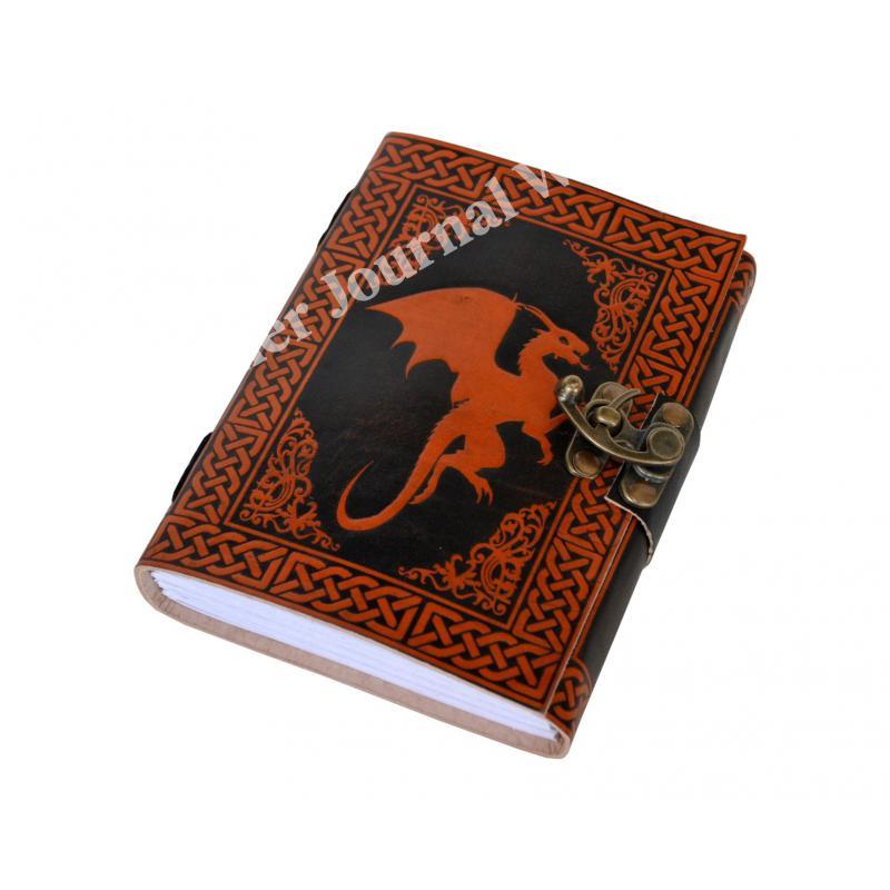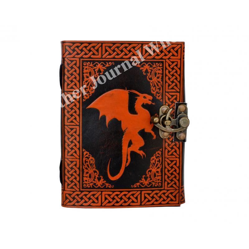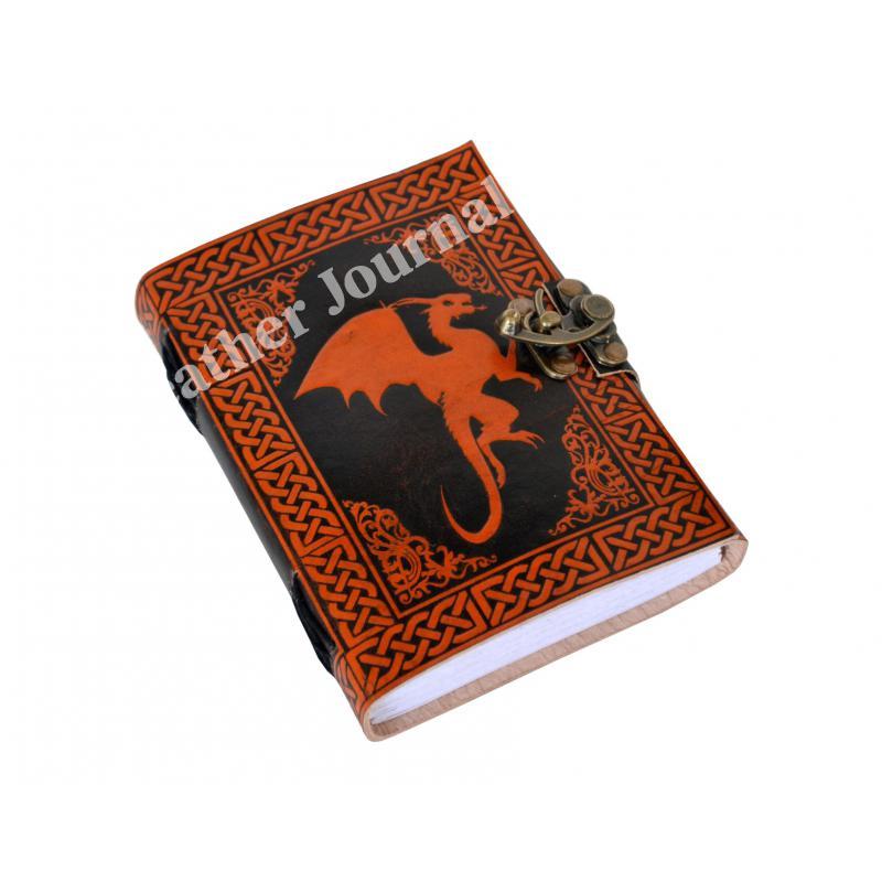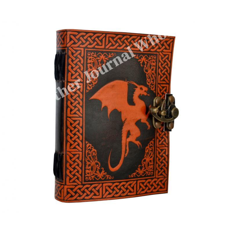 Leather Journal Celtic Dragon Note Book Orange With Black Color Book Of Shadow Dairy