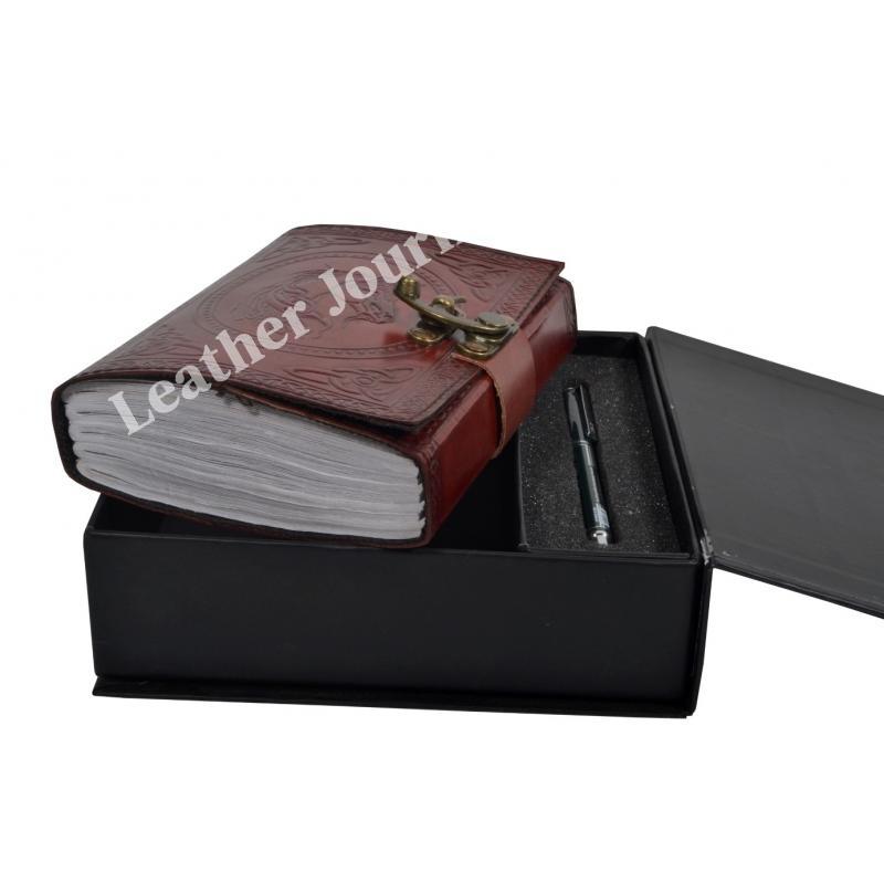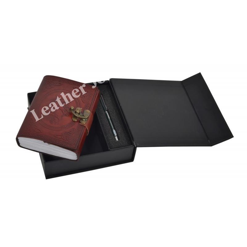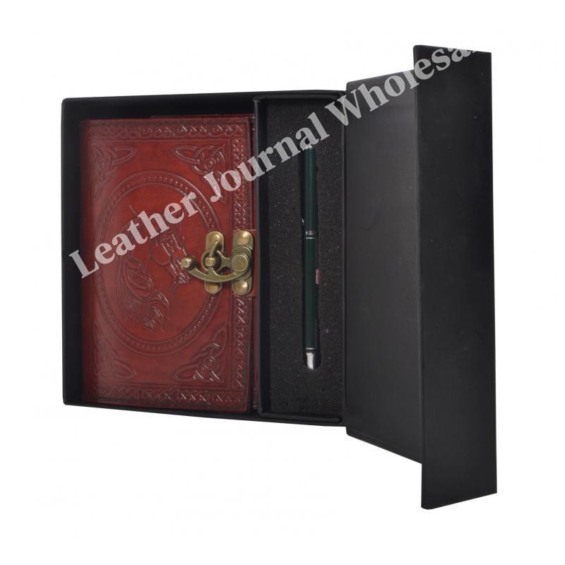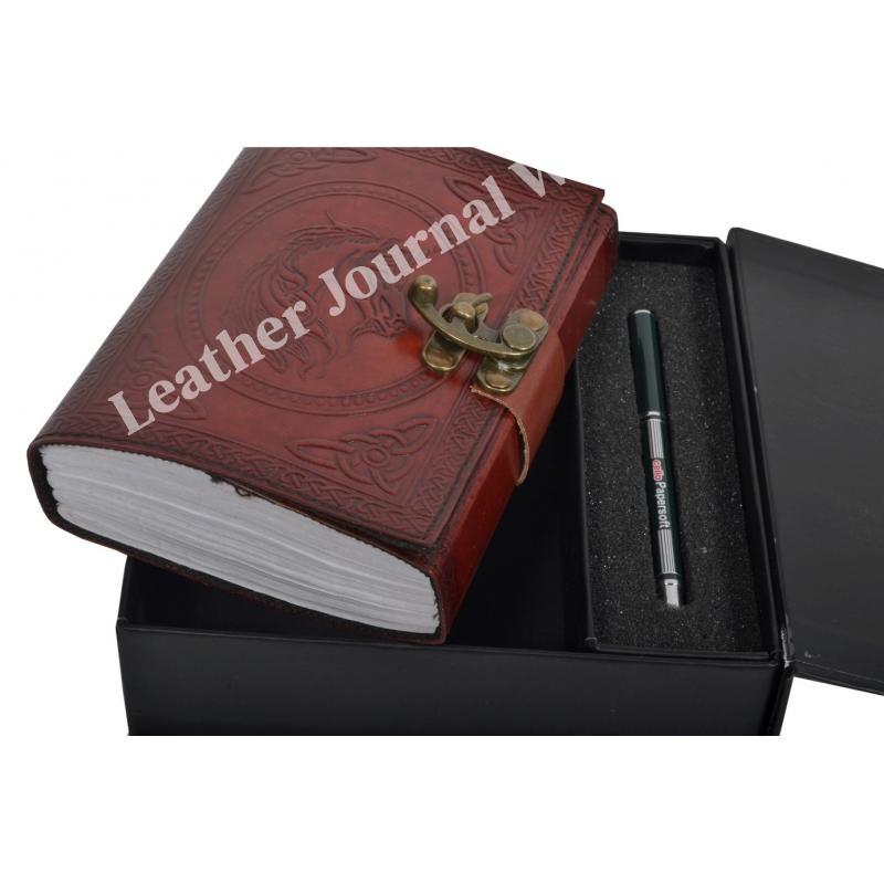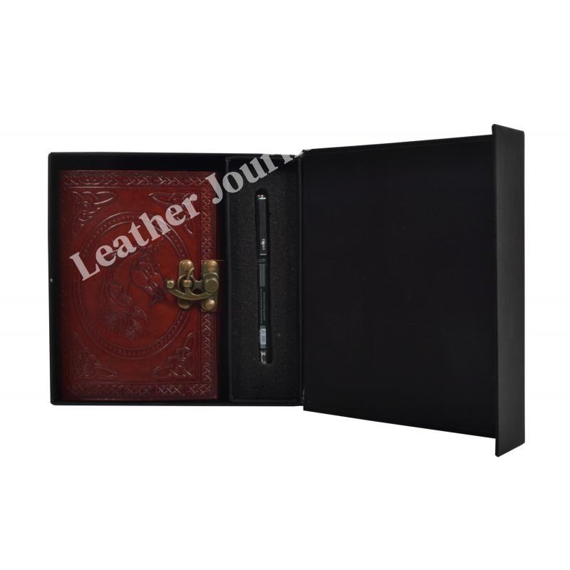 Leather Journal Gift Set Handmade Celtic Horse Journal Writing Notebook Unlined Paper, Antique Leather Daily Notepad For Men Ideal Present With Box, Secret Pen Holder and Expensive Pen