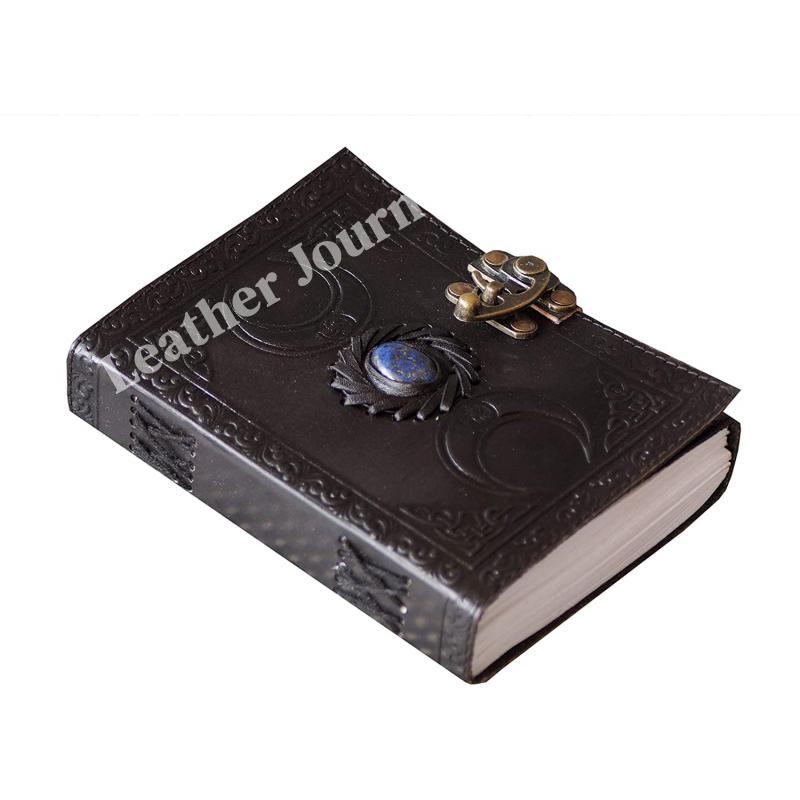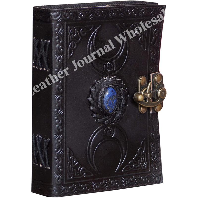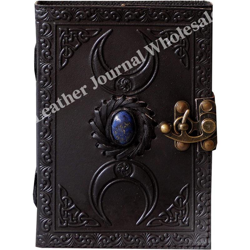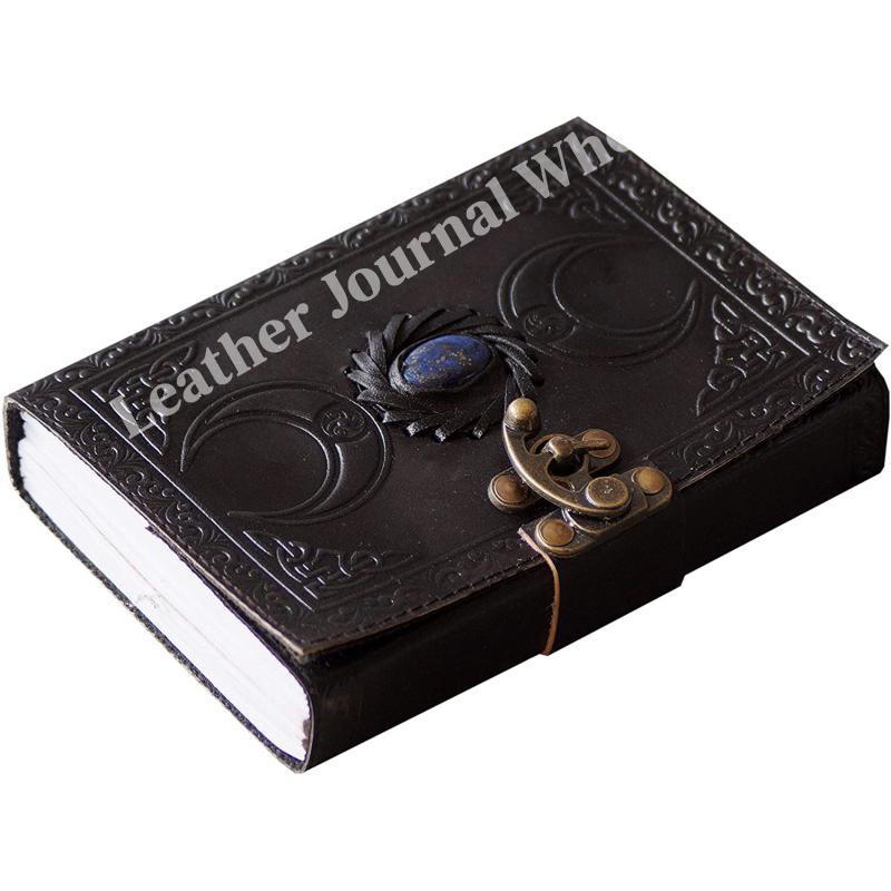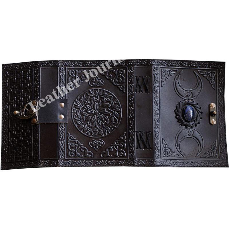 TELL YOUR STORY: Antique design book of shadows black triple moon third eye stone design journal open up one of our leather journals and put pen to paper, Leather Bound Journal will become a welcome friend taken on your travels to document your journeys - Multipurpose journal can be used as an appointment book, daily diary, travel journal/notebook.