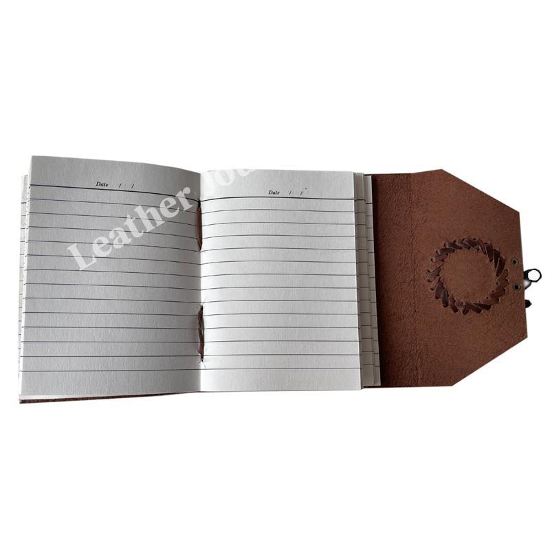 HANDMADE, VINTAGE DESIGN CRAFT  PAPER : 100% handmade leather books are complemented with a durable thread and a bound-to-last hand-sewn binding, adding to the book’s decorative appeal - A self-leather wrap tie keeps your treasured writings under cover - Unlike many other leather notebooks with raw edges, our journal leather has an old-world feel with burnished finish.