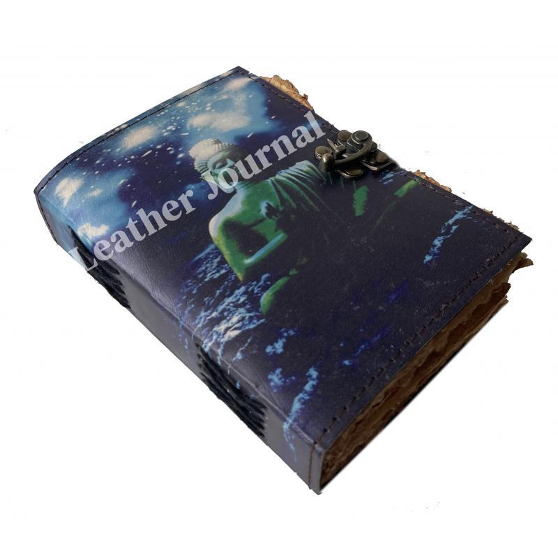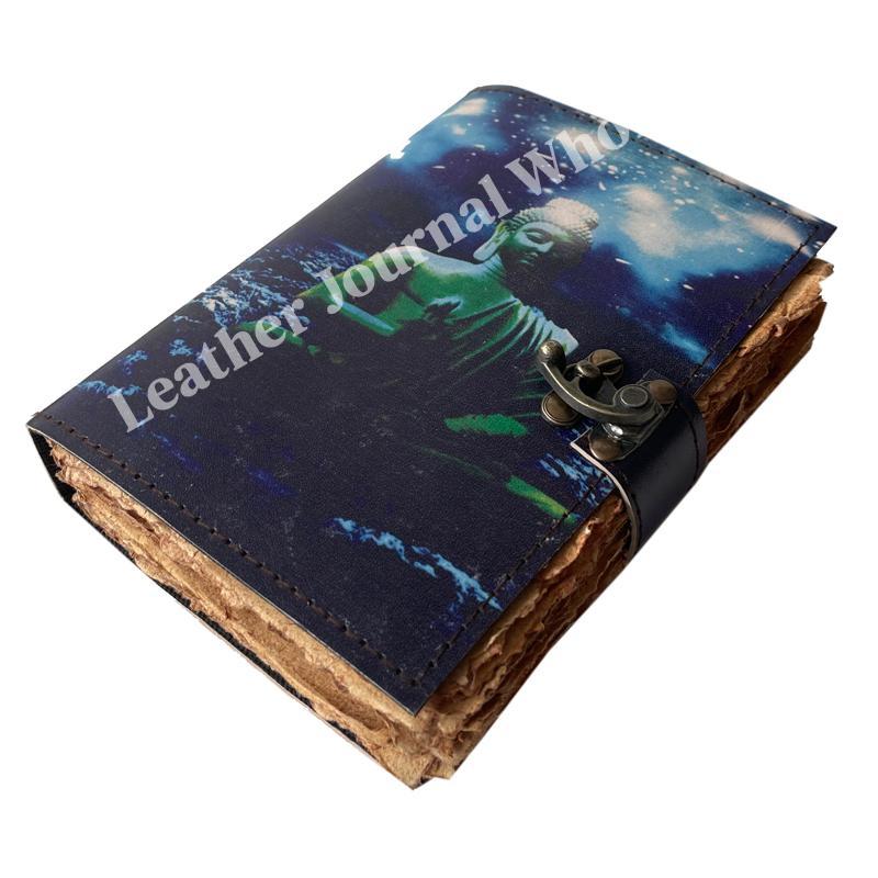Leather Printed Journal Notebook Handmade Buddha Print Design Vintage Deckle Edge Paper Journals For Men And Women - Craft Unlined Paper 200 Pages, Sketchbook & Notebook