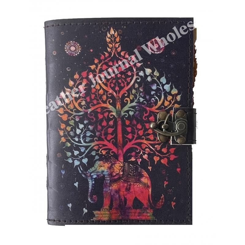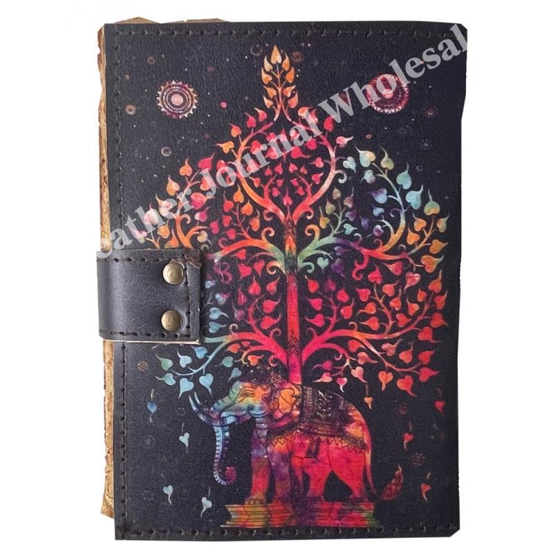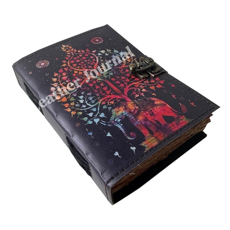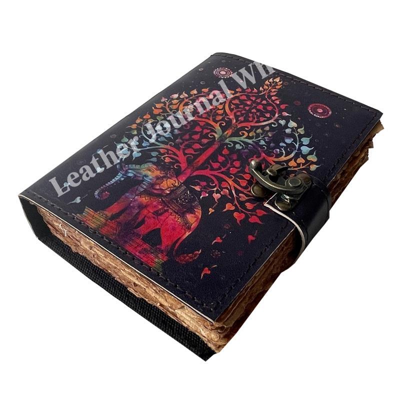 Leather Printed Journal Notebook Handmade Elephant Print Design Vintage Deckle Edge Paper Journals For Men And Women - Craft Unlined Paper 200 Pages, Sketchbook & Notebook