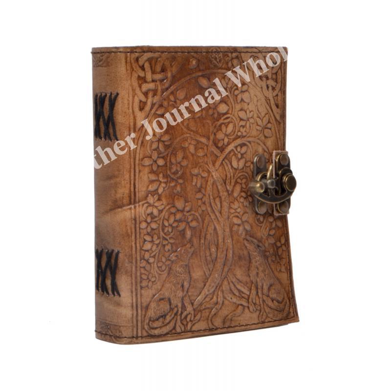 New Handmade Leather Journal Wolf Tree Diary Leather Journal Notebook