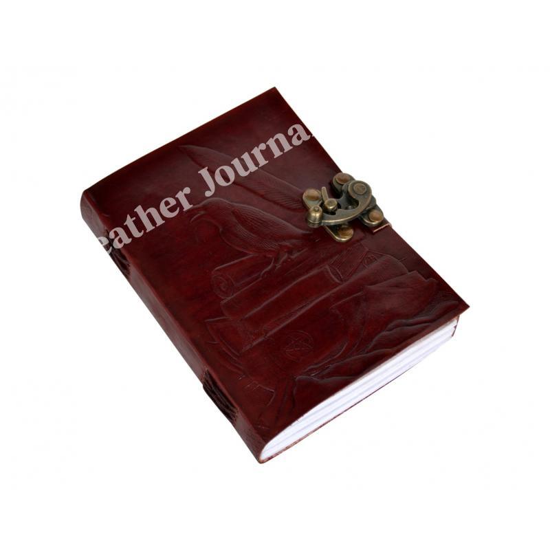 路Handcrafted out of Indian leather with 120 pages of recycled Indian cotton paper Pentagram Embossed Leather Journal Diary With one C Lock Blank Diary