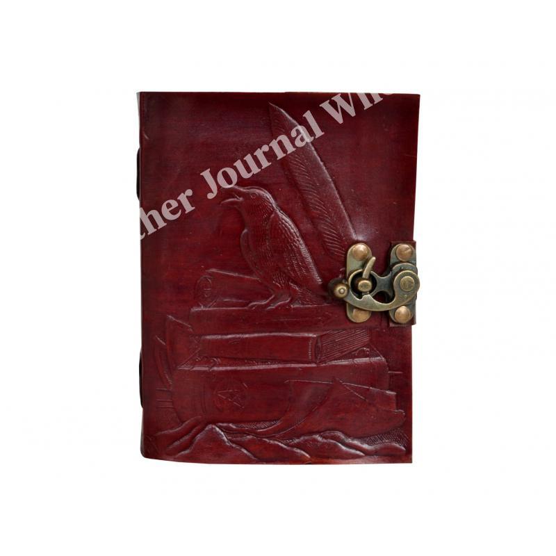 Note Book Beautiful Embossed Leather Journal Brown Crow Leather Diary