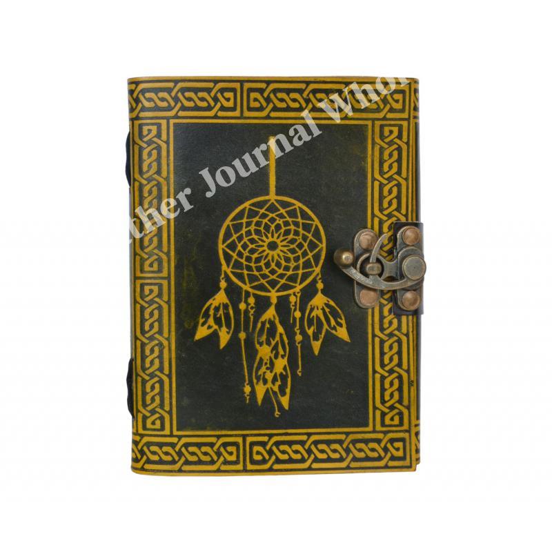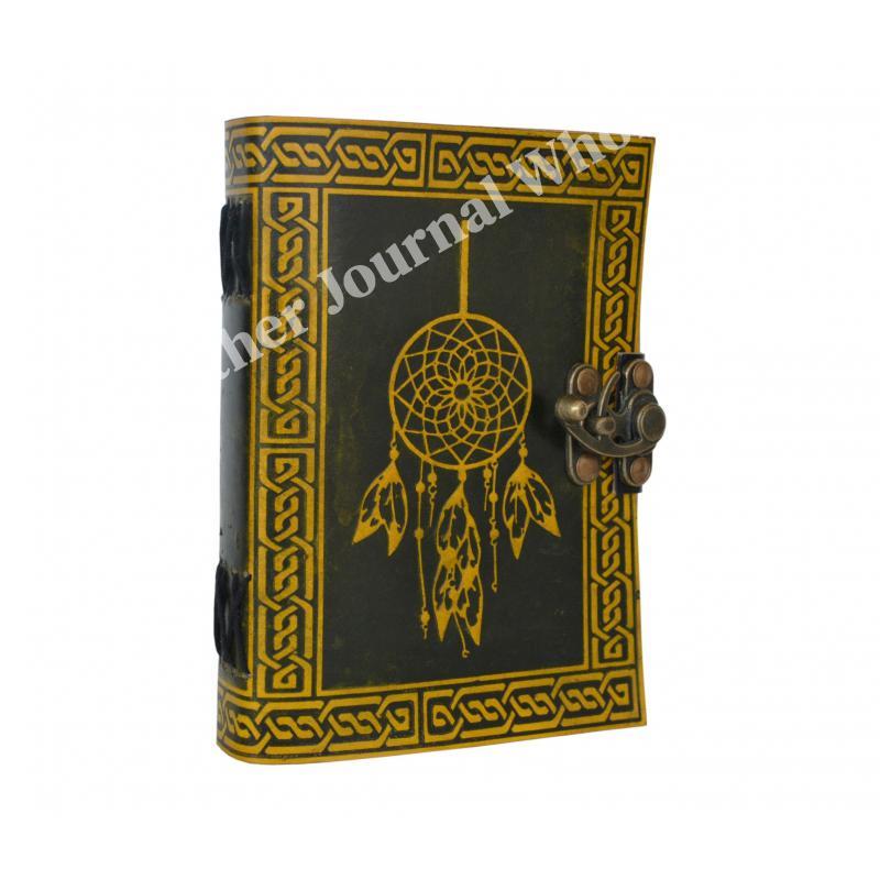 路Handcrafted out of Indian leather with 120 pages of recycled Indian cotton paper Pentagram Embossed Leather Journal Diary With one C Lock Blank Diary