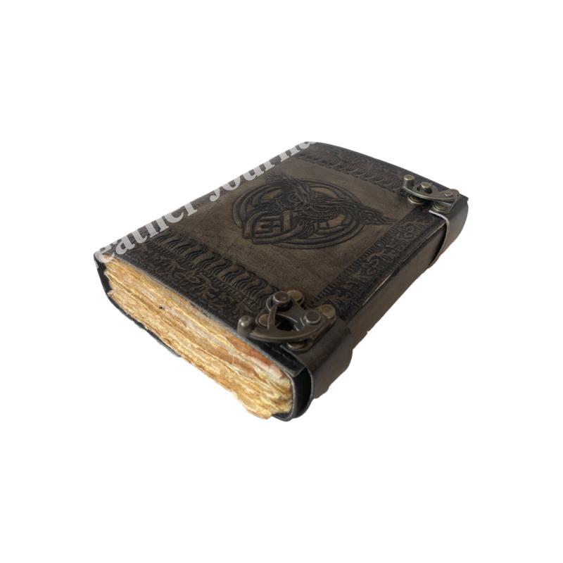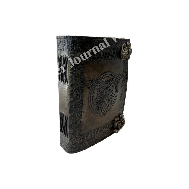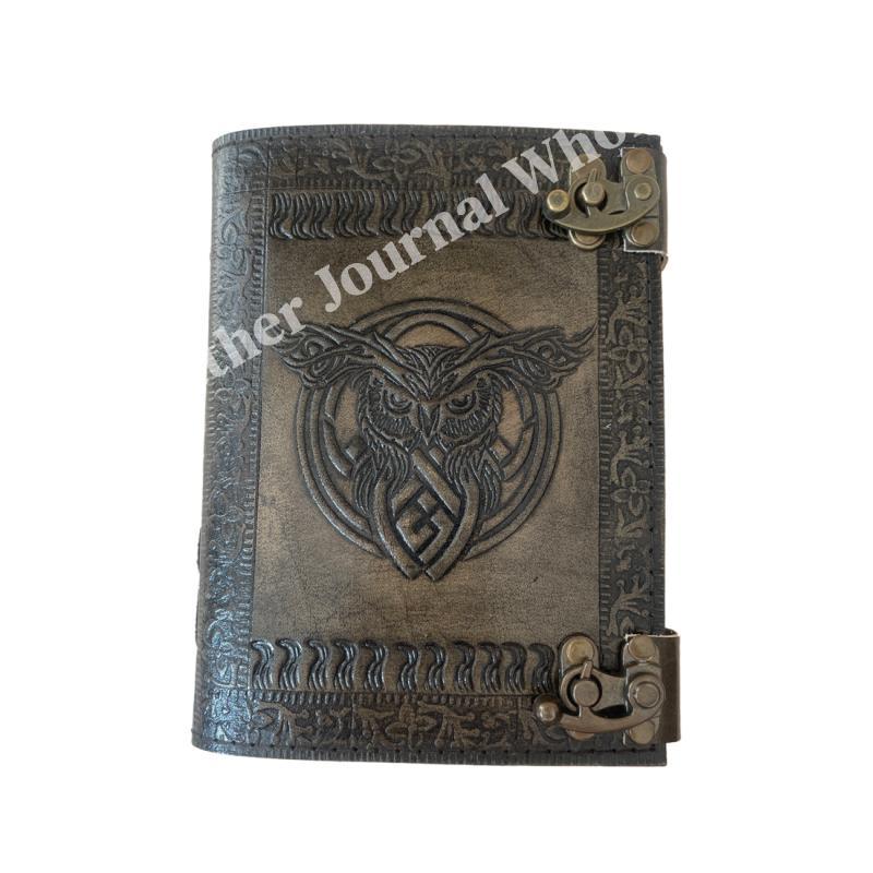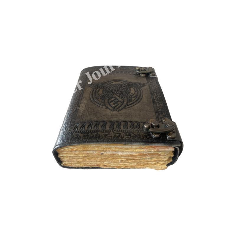 OWL Leather Journal Antique Embossed Charcoal Book of Shadows Prop Handmade Vintage Paper Personal Organizer Gift for Him her