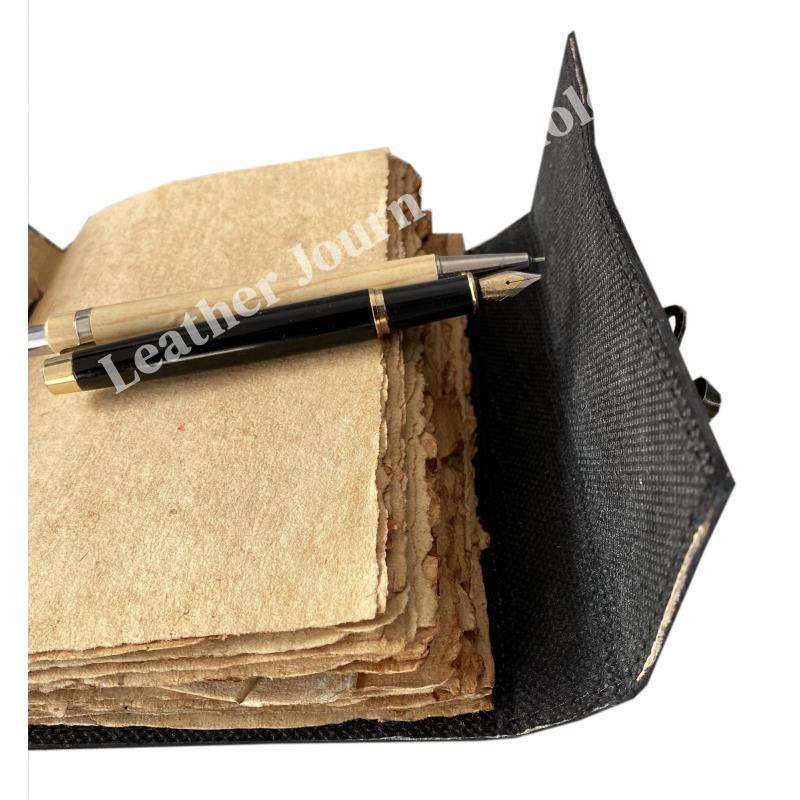 HANDMADE RECYCLED COTTON DECKLE PAPER : 100% handmade leather books are complemented with a durable thread and a bound-to-last hand-sewn binding, adding to the book’s decorative appeal - A self-leather wrap tie keeps your treasured writings under cover - Unlike many other leather notebooks with raw edges, our journal leather has an old-world feel with burnished finish.