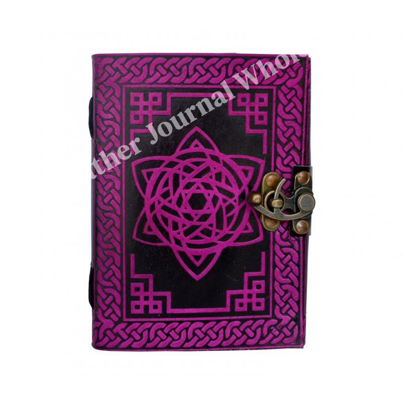 路Handcrafted out of Indian leather with 120 pages of recycled Indian cotton paper Pentagram Embossed Leather Journal Diary With one C Lock Blank Diary