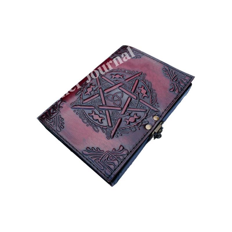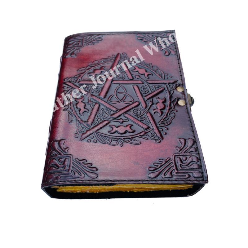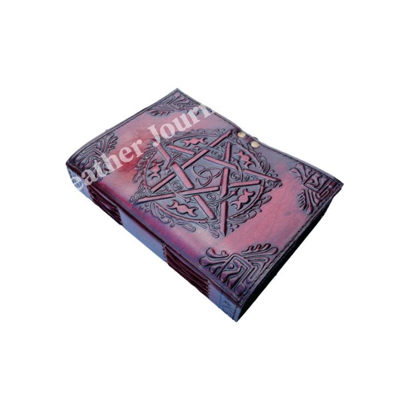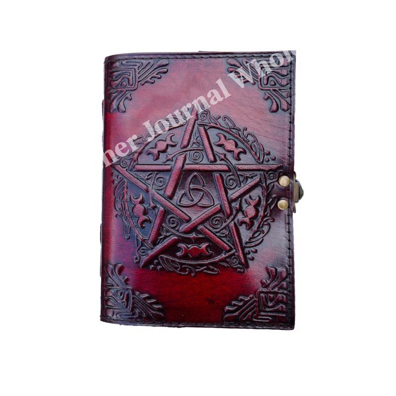 Pentagram Vintage Leather Journal for writing Brown wiccan Notebook Embossed Diary deckle art Paper Wholesaler Gifts