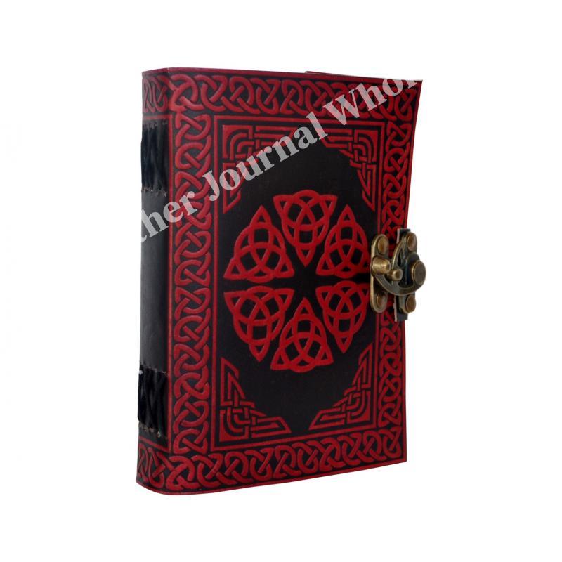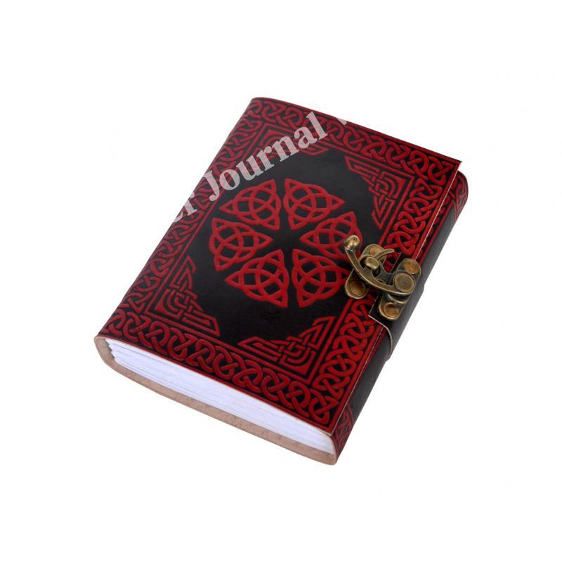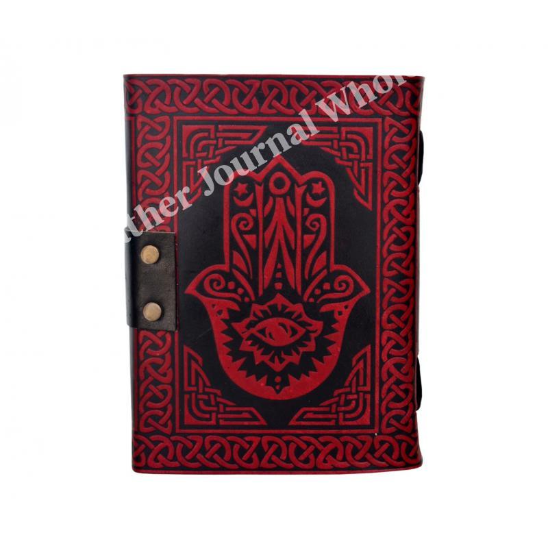 Real Leather Red And Black Color Shadow Celtic Back Side Hamsa Design Note Book Blank Book Journal