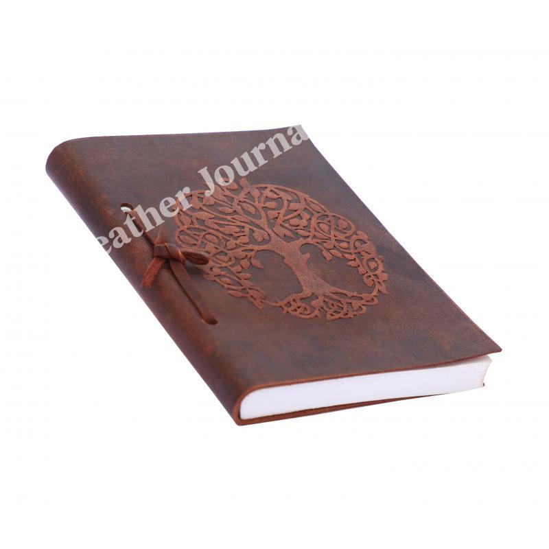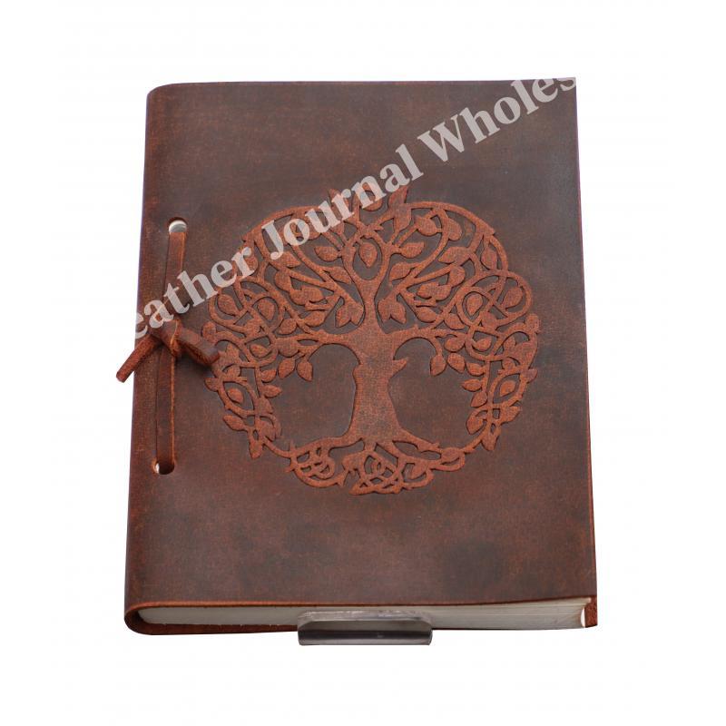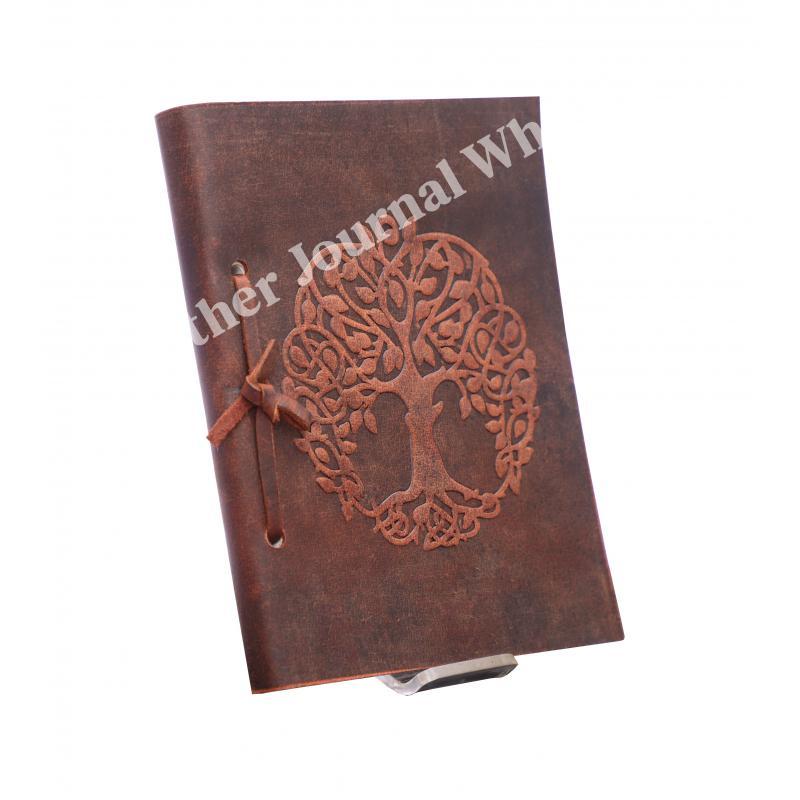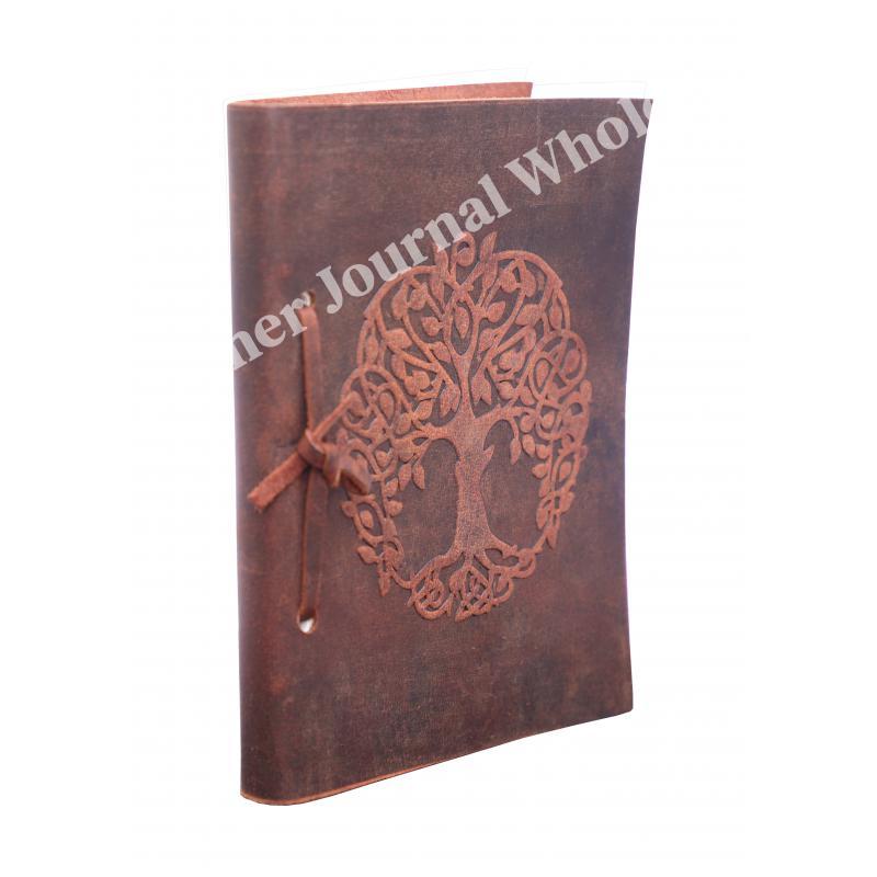 Round Tree Of Life Embossed Handmade Soft Leather Journal Writing Bound Journals Diary Handmade Recycled Cotton 120 Blank Pages