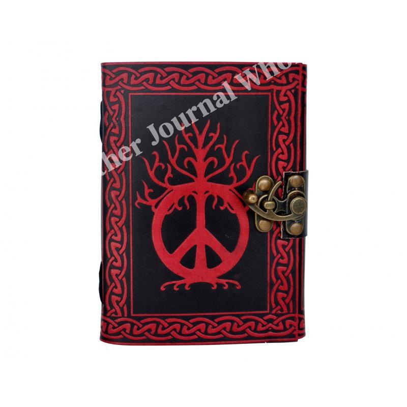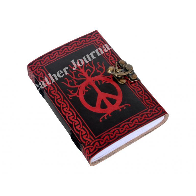 Shadow Red Color Peace Of Sign Leather Journal Note Book Wholesaler Of India