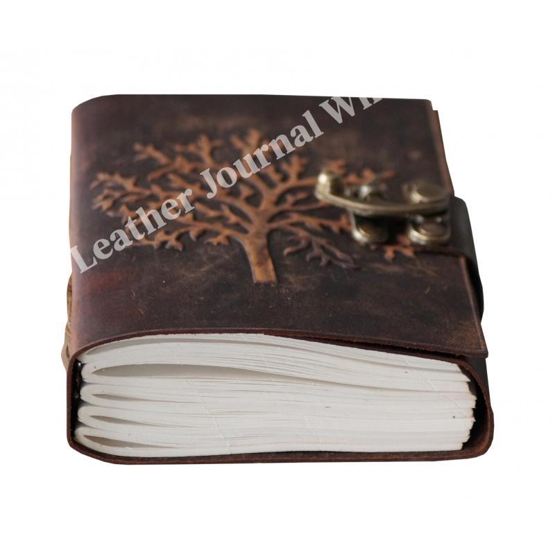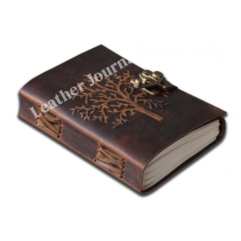 ✔ BEAUTIFULLY CRAFTED & UNIQUE HIGHLY EMBOSSED TREE OF LIFE LEATHER DESIGN BRASS C - LOCK : Made from Brown Color Leather with a real leather scent. Naturally tanned with special oil, if you scratch or fold this crazy horse leather, With Stone you create your own distressed style! Rub your markings and they will fade away. Hand made from 100% genuine leather, our journals can vary in look and shade, producing a unique item, no two are ever the same - a special keepsake for your thoughts & ideas
