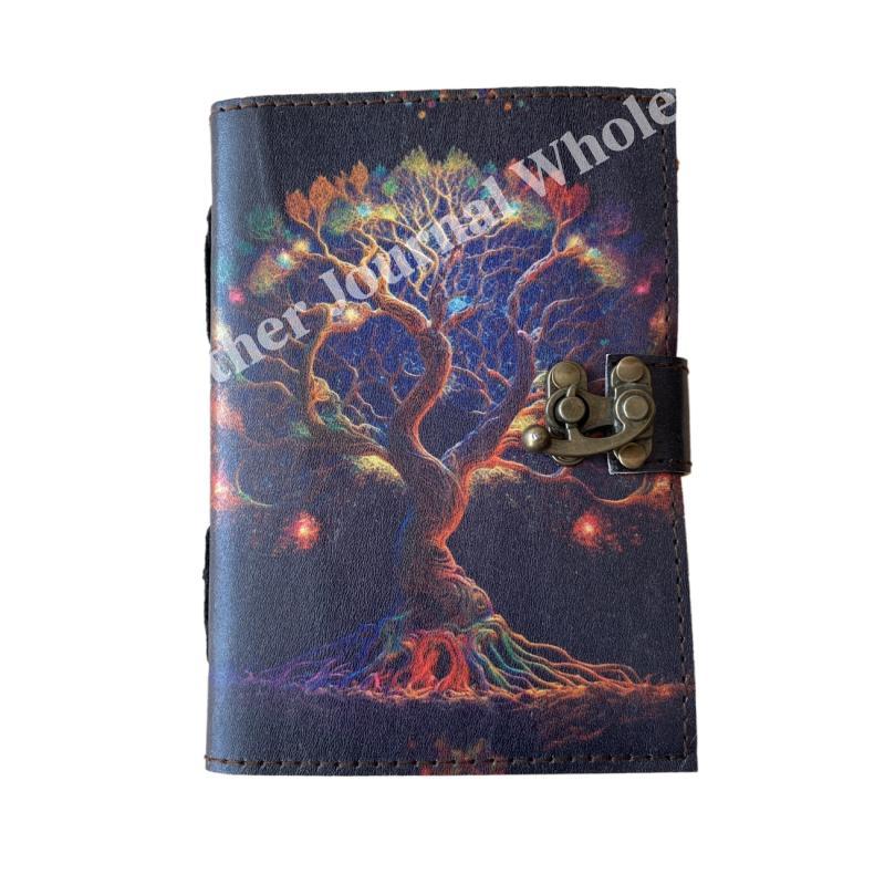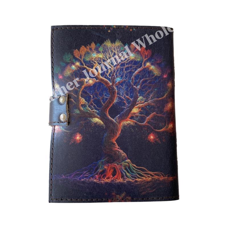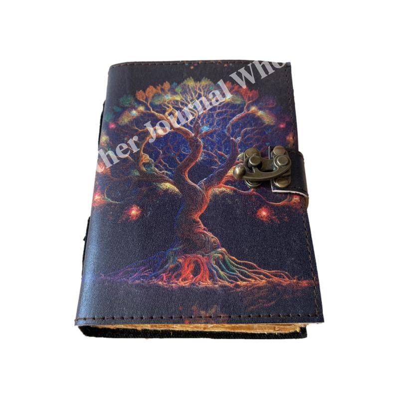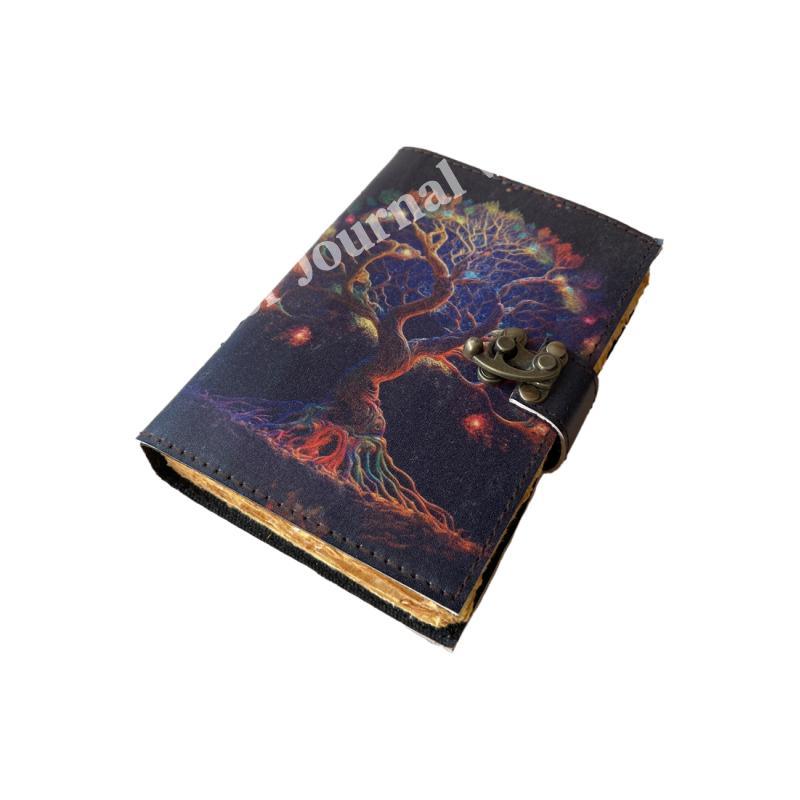 Tree oF life Collage Poster Design Deckle Vintage Paper Handmade Leather Printed Journal Retro Notebook Sketchbook planner