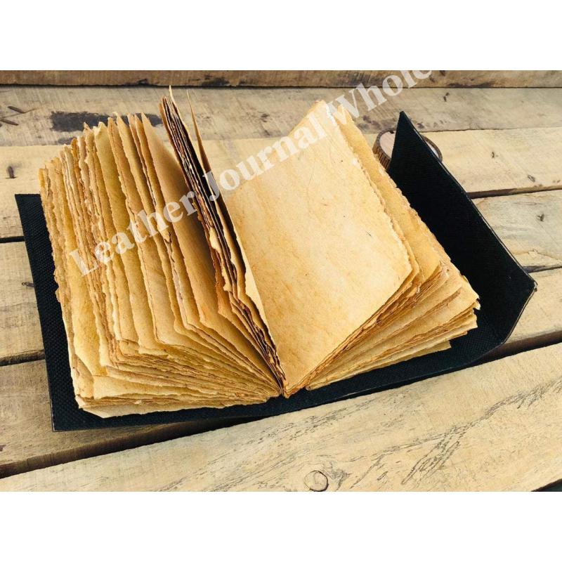HANDMADE DECKLE PAPER : 100% handmade leather books are complemented with a durable thread and a bound-to-last hand-sewn binding, adding to the book’s decorative appeal - A self-leather wrap tie keeps your treasured writings under cover - Unlike many other leather notebooks with raw edges, our journal leather has an old-world feel with burnished finish.