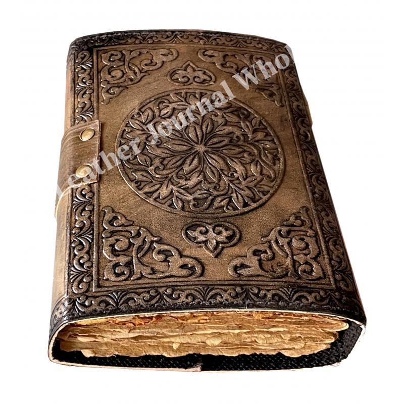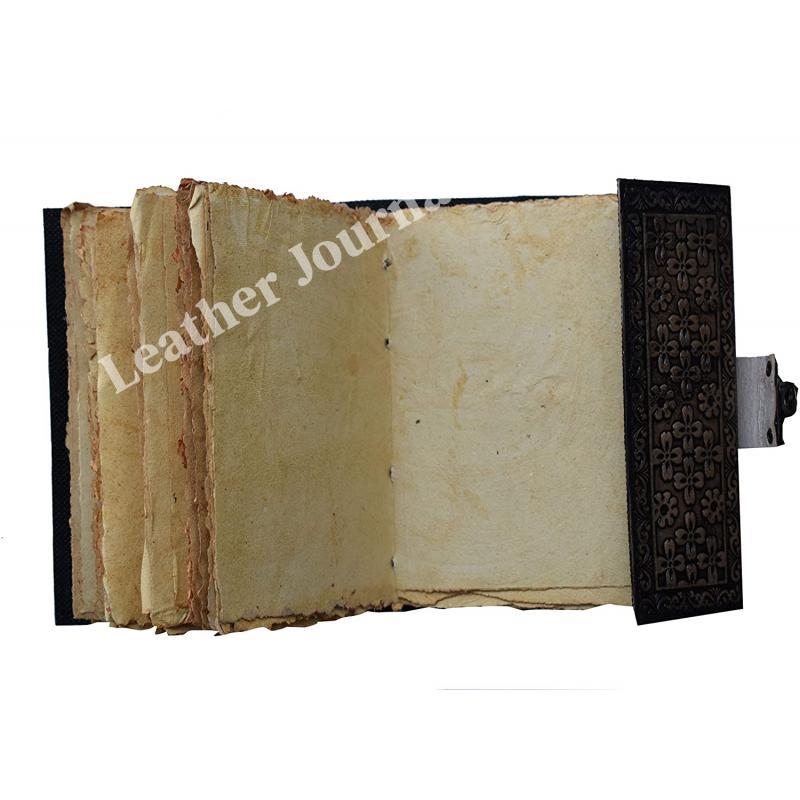 HANDMADE RECYCLED COTTON DECKLE EDGE PAPER : 100% handmade leather books are complemented with a durable thread and a bound-to-last hand-sewn binding, adding to the book’s decorative appeal - A self-leather wrap tie keeps your treasured writings under cover - Unlike many other leather notebooks with raw edges, our journal leather has an old-world feel with burnished finish.