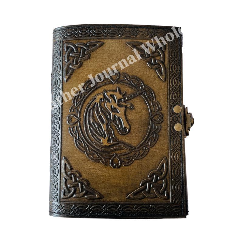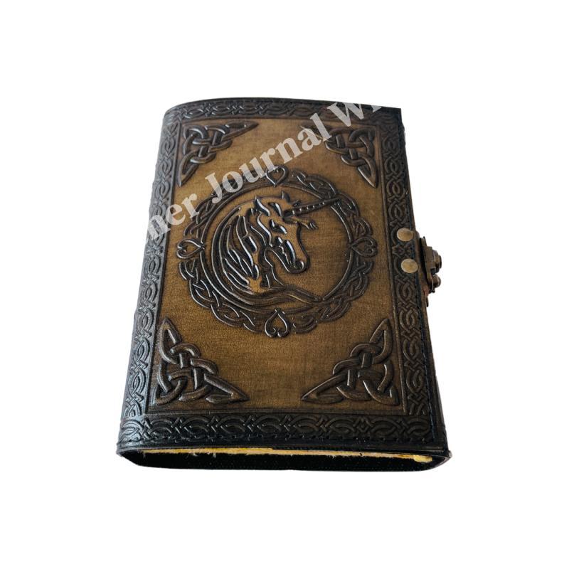 Unicorn Celtic wiccan journals for writing vintage leather book of spells prop Charcoal handmade embossed deckle Art paper