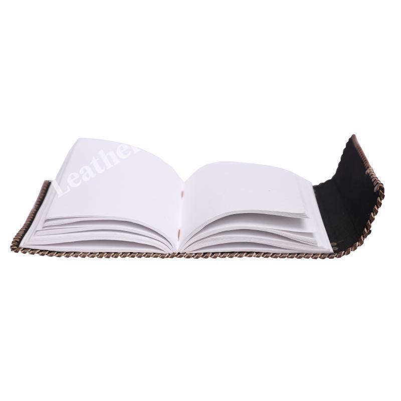HANDMADE, HANDMADE HANDMADE RECYCLED COTTON PAPER : 100% handmade leather books are complemented with a durable thread and a bound-to-last hand-sewn binding, adding to the book’s decorative appeal - A self-leather wrap tie keeps your treasured writings under cover - Unlike many other leather notebooks with raw edges, our journal leather has an old-world feel with burnished finish.