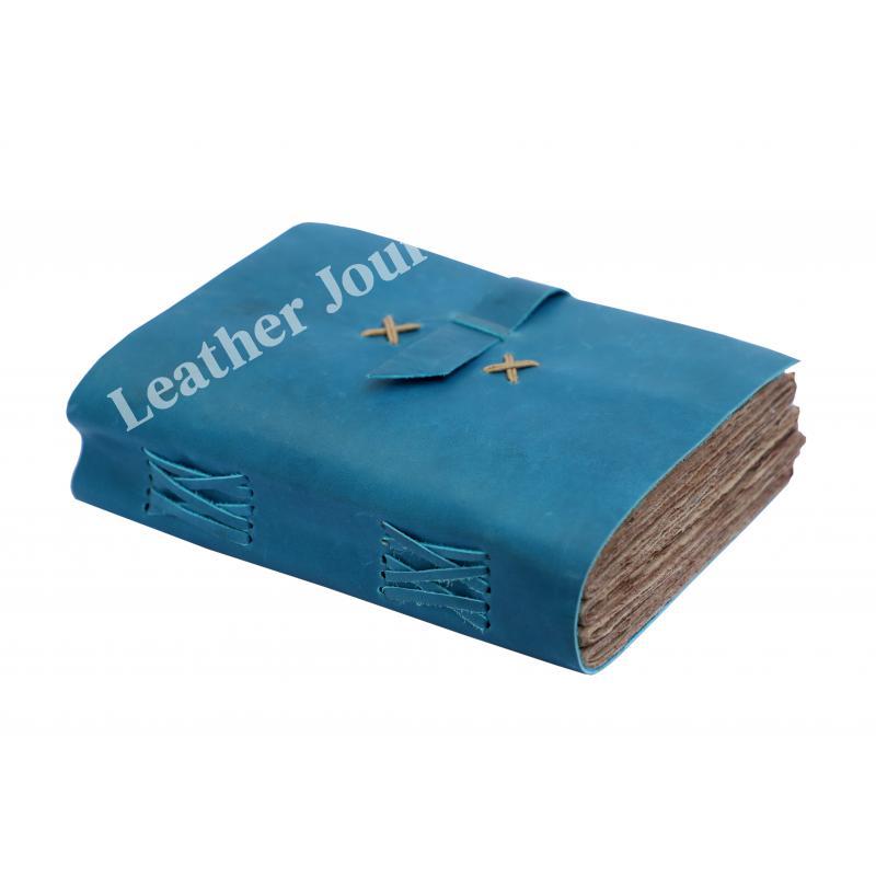 HANDMADE RECYCLED COTTON PAPER : 100% handmade leather books are complemented with a durable thread and a bound-to-last hand-sewn binding, adding to the book’s decorative appeal - A self-leather wrap tie keeps your treasured writings under cover - Unlike many other leather notebooks with raw edges, our journal leather has an old-world feel with burnished finish.