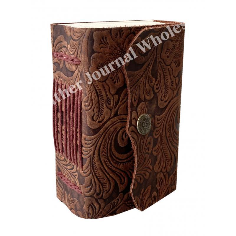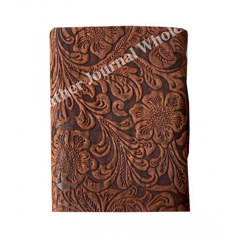 Vintage Bound Journal Antique Garden Flower Embossed Brown Leather Notebook Blank Spell Journal Blank Paper Diary