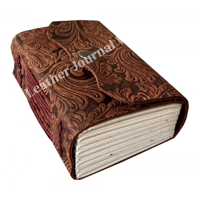 HANDMADE RECYCLED UNLINED WHITE BLANK PAPER : 100% handmade leather books are complemented with a durable thread and a bound-to-last hand-sewn binding, adding to the book’s decorative appeal - A self-leather wrap tie keeps your treasured writings under cover - Unlike many other leather notebooks with raw edges, our journal leather has an old-world feel with burnished finish.