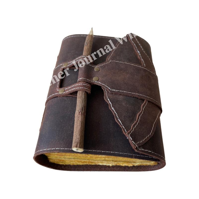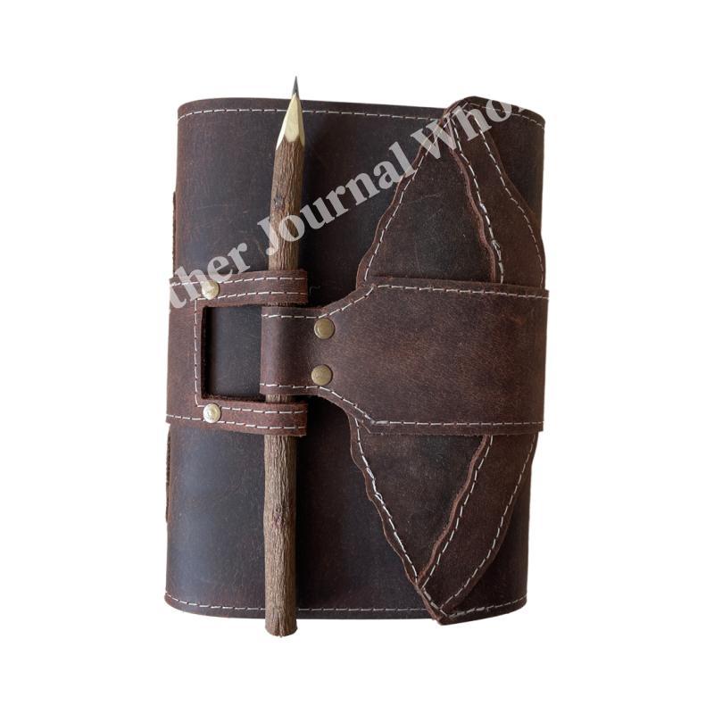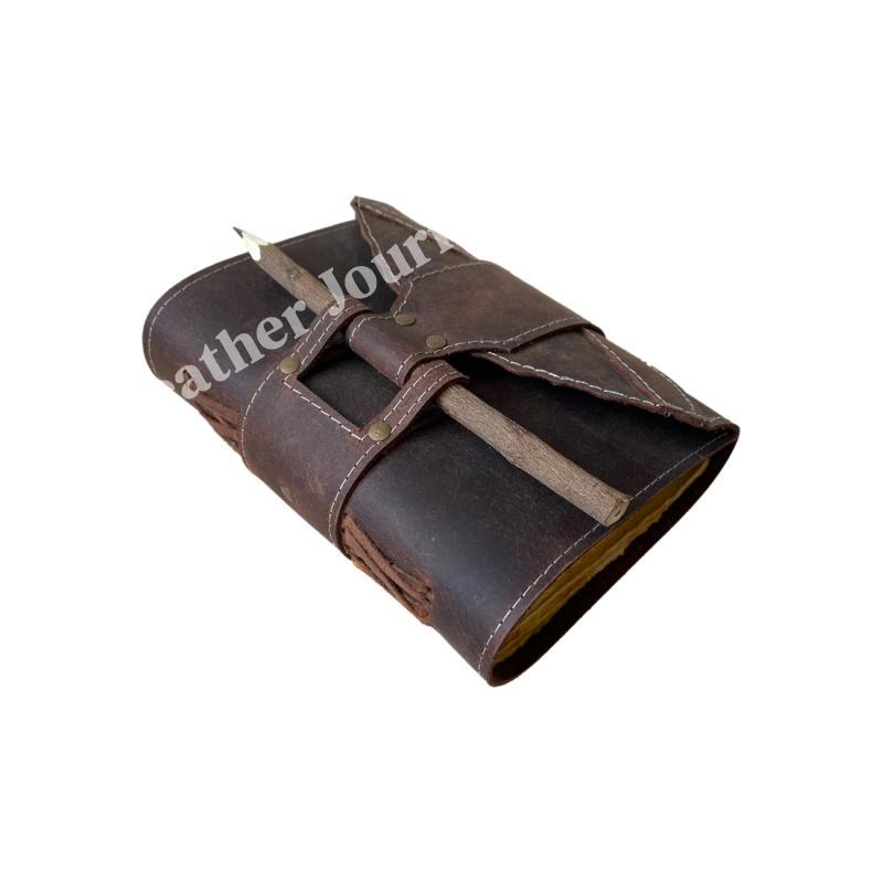 Vintage Brown Leather Bound Journal Pencil Antique Handmade Notebook Blank Spell Journal Diary With Deckle Edge Paper 200 Pages