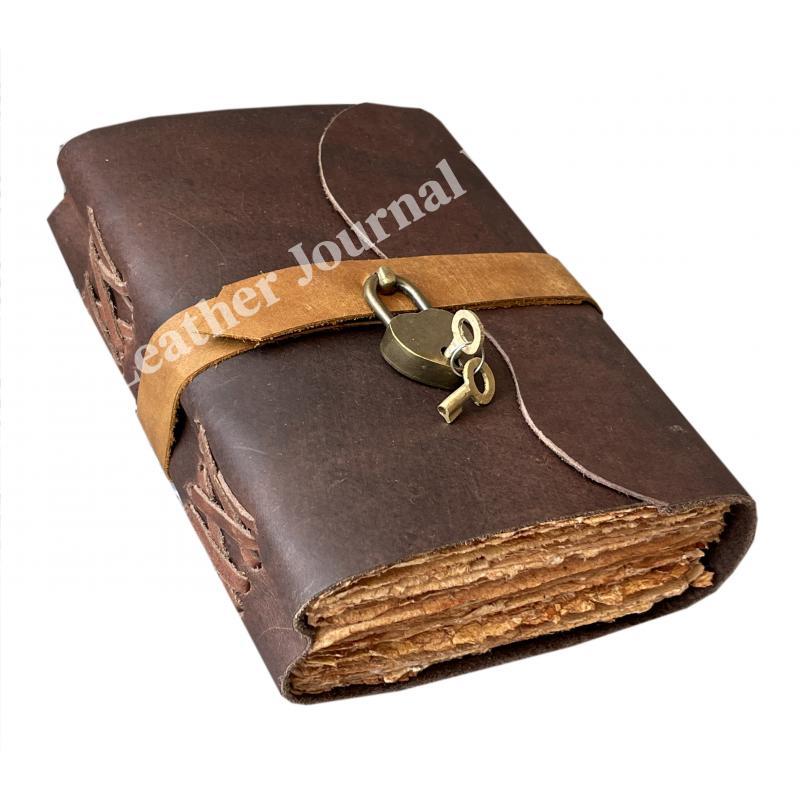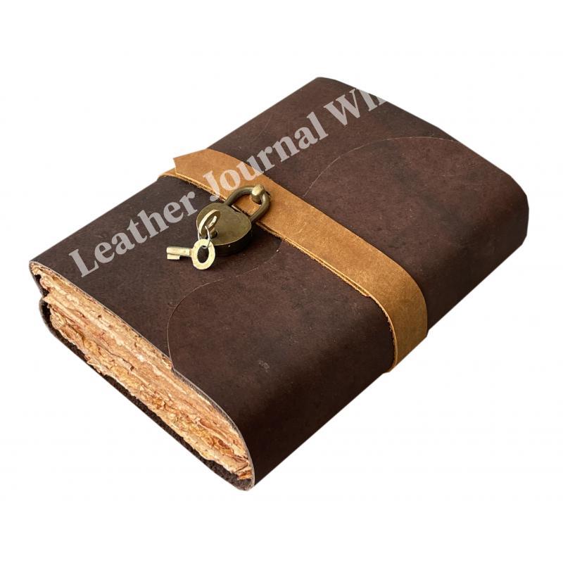 Vintage Brown Soft Leather Bound Lock key Journal Antique Handmade Notebook Blank Spell Book Journal Diary