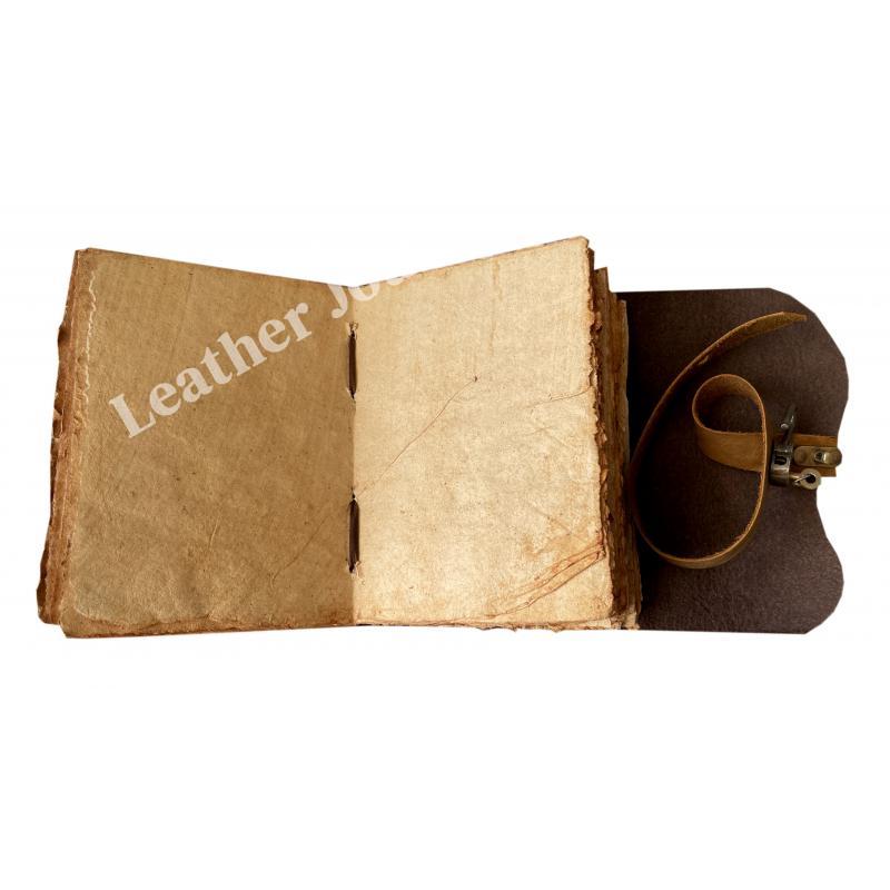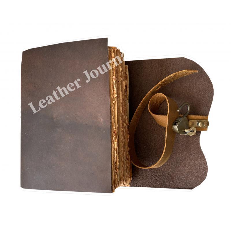 HANDMADE DECKLE  PAPER : 100% handmade leather books are complemented with a durable thread and a bound-to-last hand-sewn binding, adding to the book’s decorative appeal - A self-leather wrap tie keeps your treasured writings under cover - Unlike many other leather notebooks with raw edges, our journal leather has an old-world feel with burnished finish.