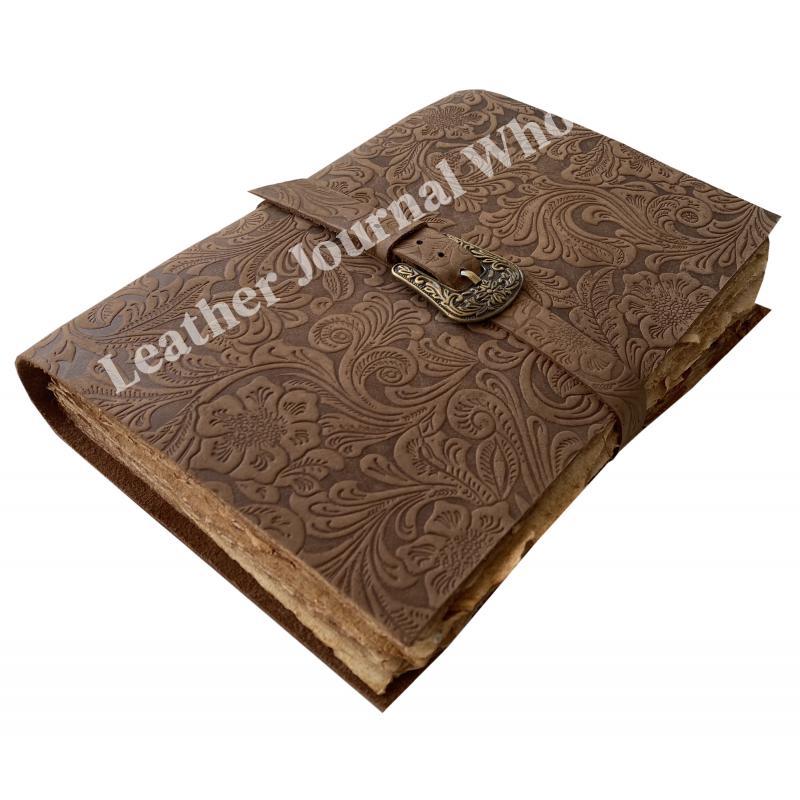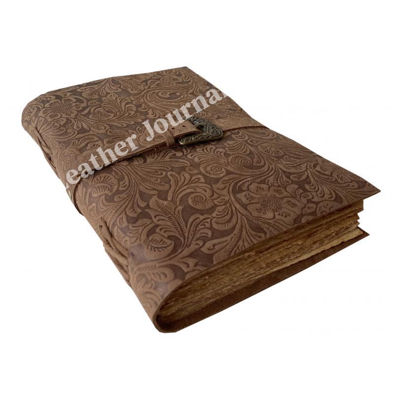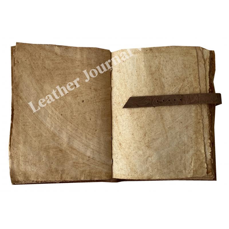 HANDMADE DECKLE  PAPER : 100% handmade leather books are complemented with a durable thread and a bound-to-last hand-sewn binding, adding to the book’s decorative appeal - A self-leather wrap tie keeps your treasured writings under cover - Unlike many other leather notebooks with raw edges, our journal leather has an old-world feel with burnished finish.