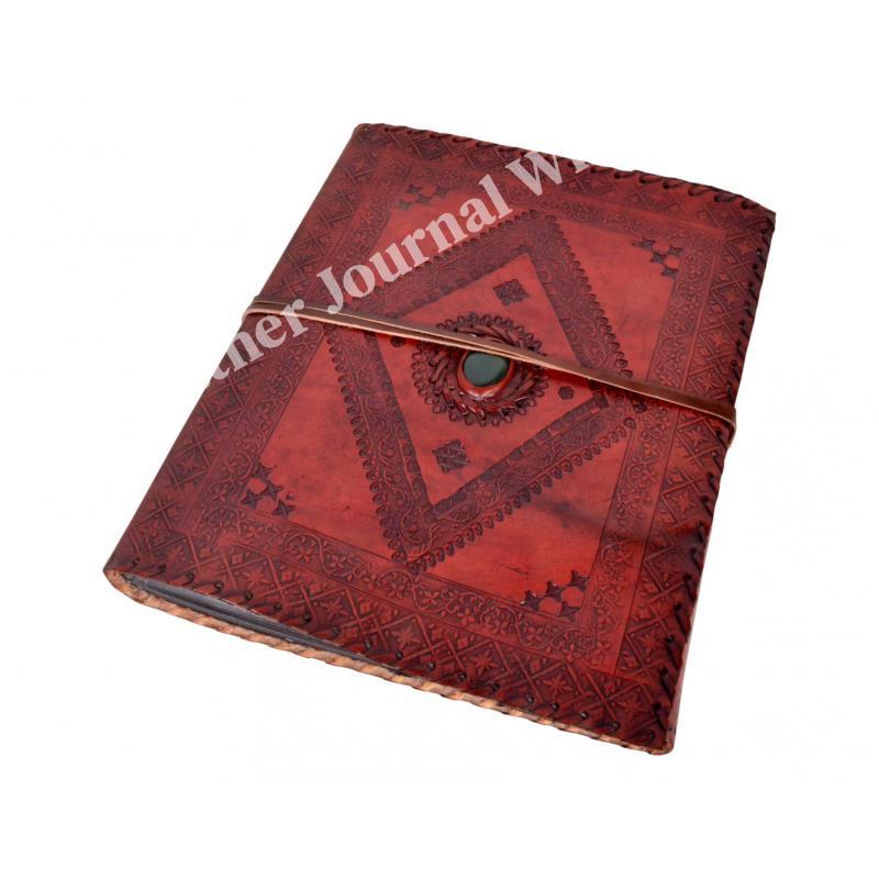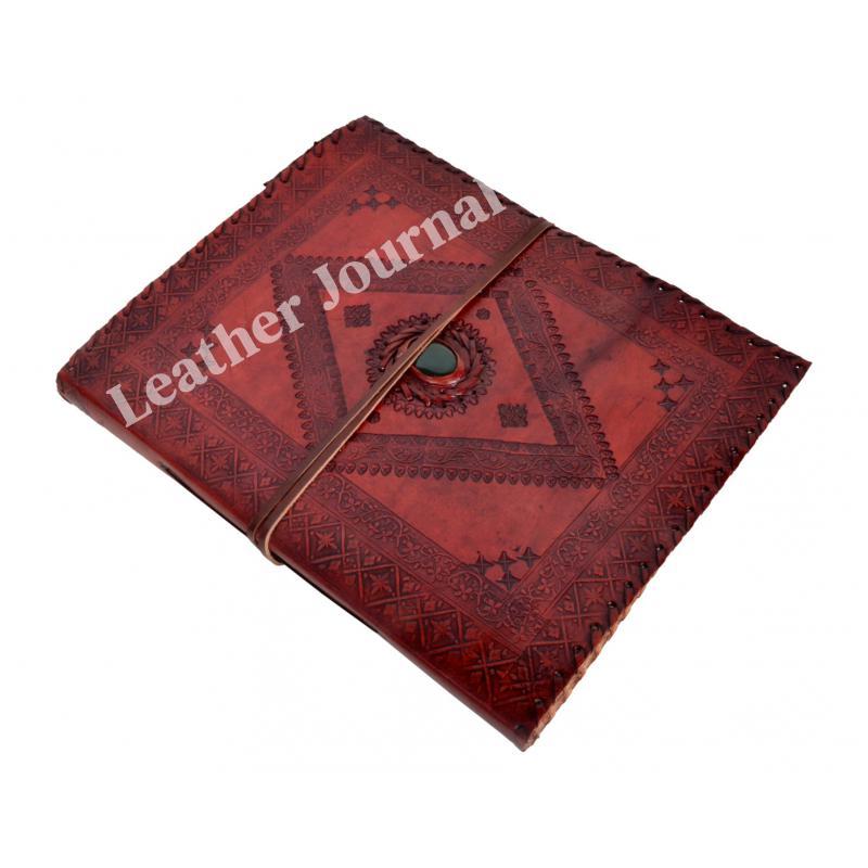 Vintage Handmade New Blank Cotton Paper Leather Journal Onyx Stone Handmade Embossed Diary
