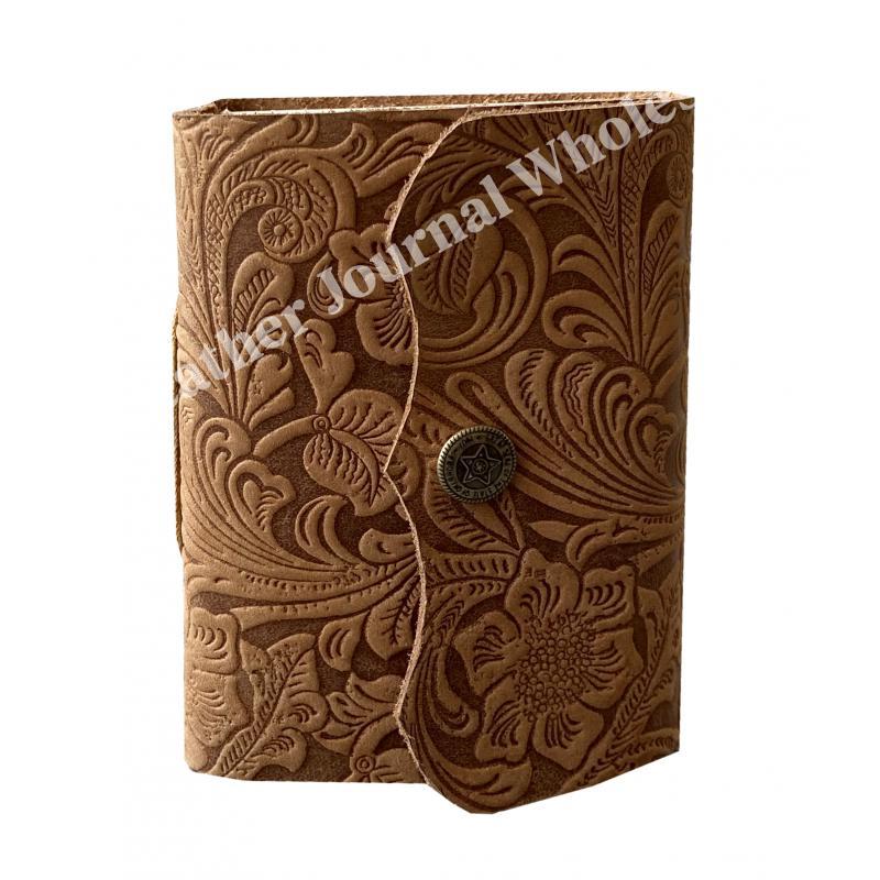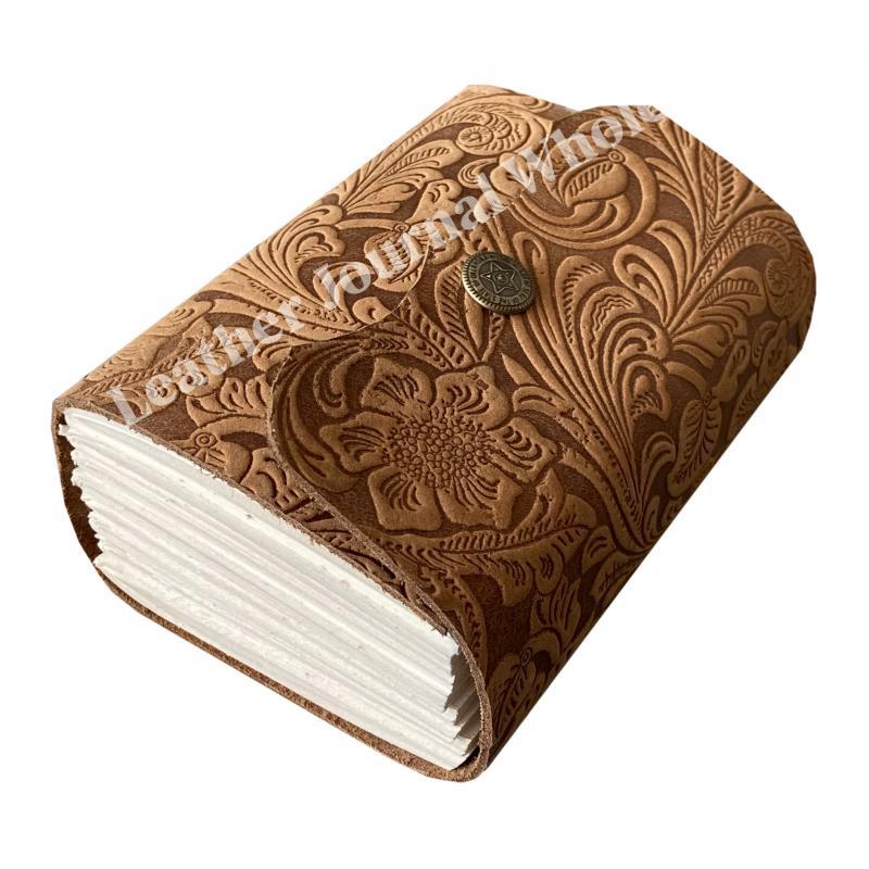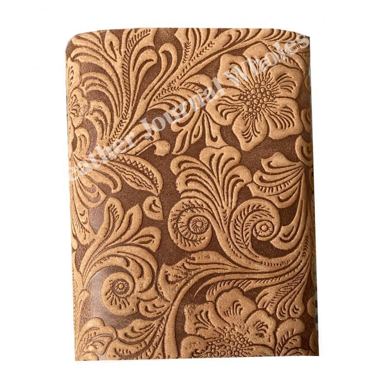 Vintage Journal Bound Antique Garden Flower Embossed Brown Leather Notebook Blank Spell Journal Blank Paper Diary