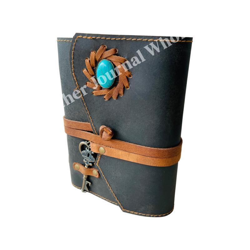 Vintage Leather Bound Journal Stone Soft Spell Book of Shadows Antique Grimoire Diary Key Leather Planner Deckle Paper diary
