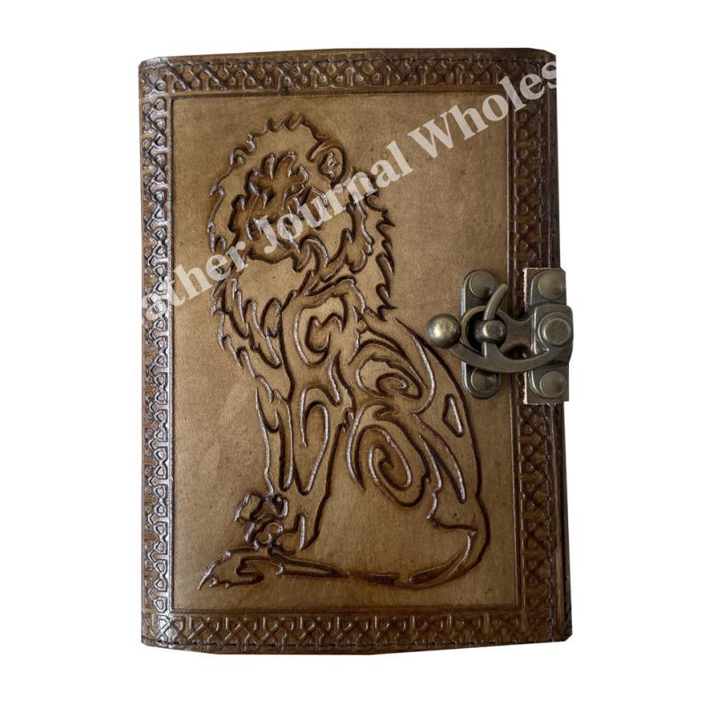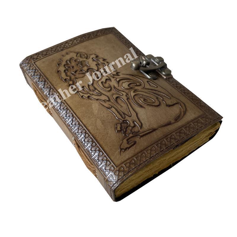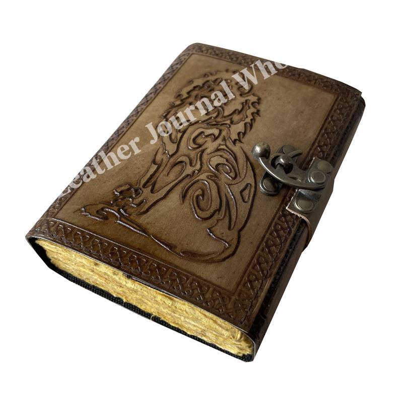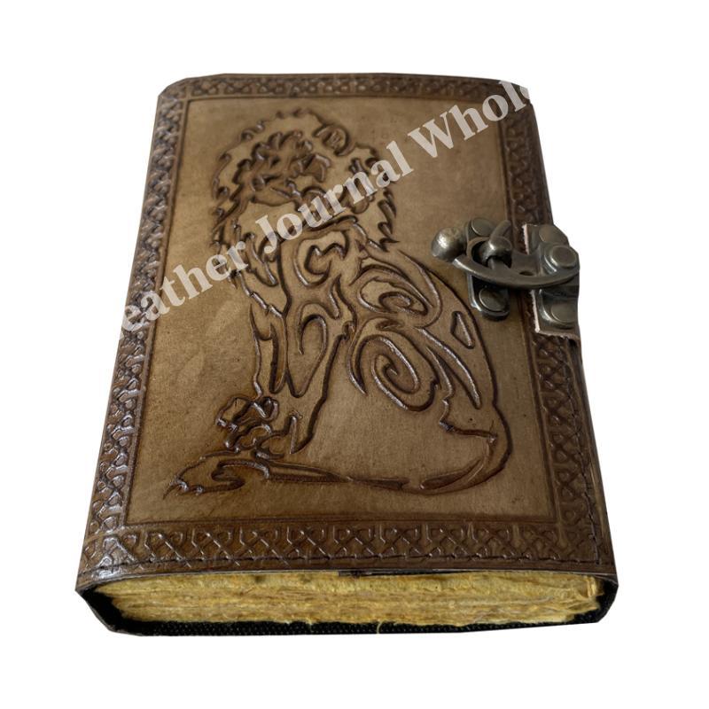 Vintage leather journal book of shadows lion notebook Charcoal deckle art paper handmade gift cover planner wholesaler leather
