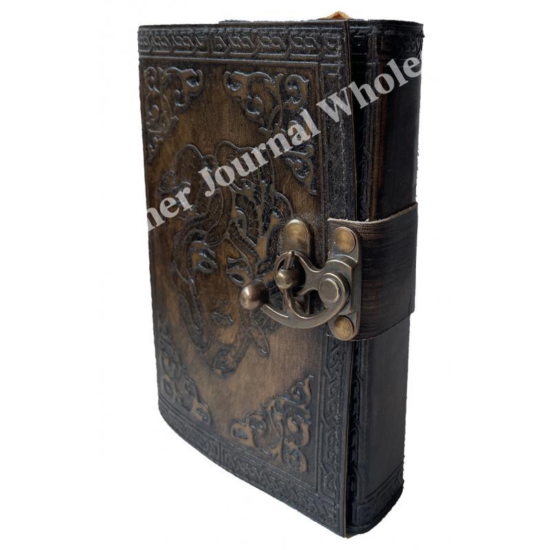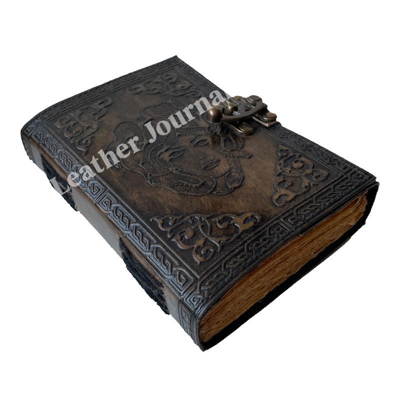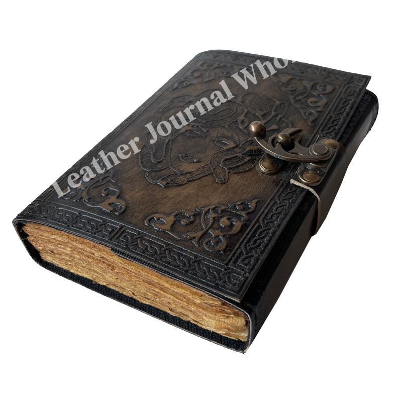 Wholesaler Handmade Grimoire Leather Journal Soul Of Snake Embossed Spell Book Of Shadows Leather Journal With C Lock Best Gift For Christmas, New Year, Men, Women Deckle Edge Paper 200 Pages Notebook Sketchbook 7x5
