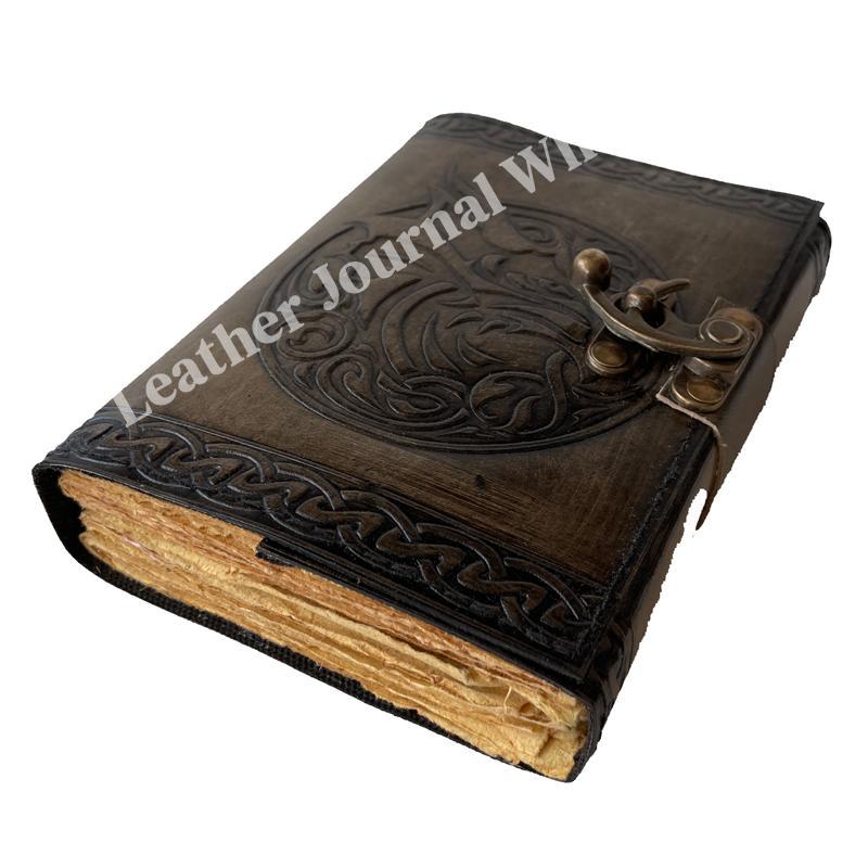 HANDMADE DECKLE PAPER : 100% handmade leather books are complemented with a durable thread and a bound-to-last hand-sewn binding, adding to the book’s decorative appeal - A self-leather wrap tie keeps your treasured writings under cover - Unlike many other leather notebooks with raw edges, our journal leather has an old-world feel with burnished finish.