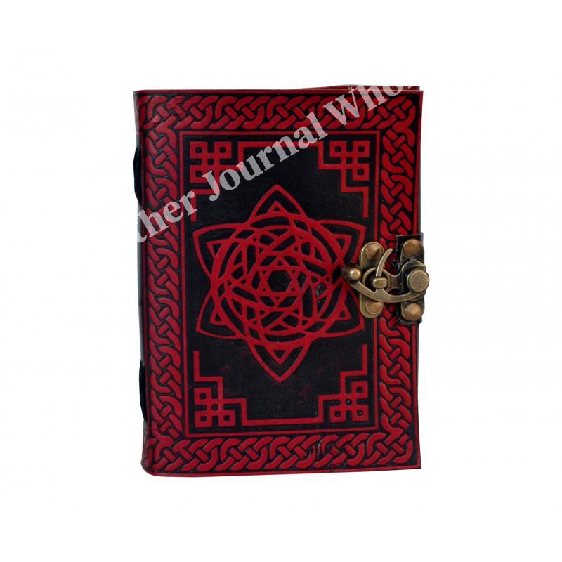 路Handcrafted out of Indian leather with 120 pages of recycled Indian cotton paper Pentagram Embossed Leather Journal Diary With one C Lock Blank Diary