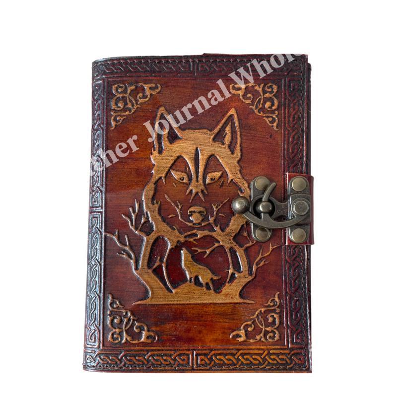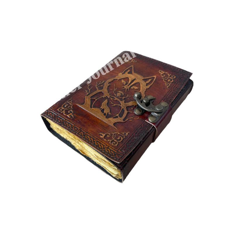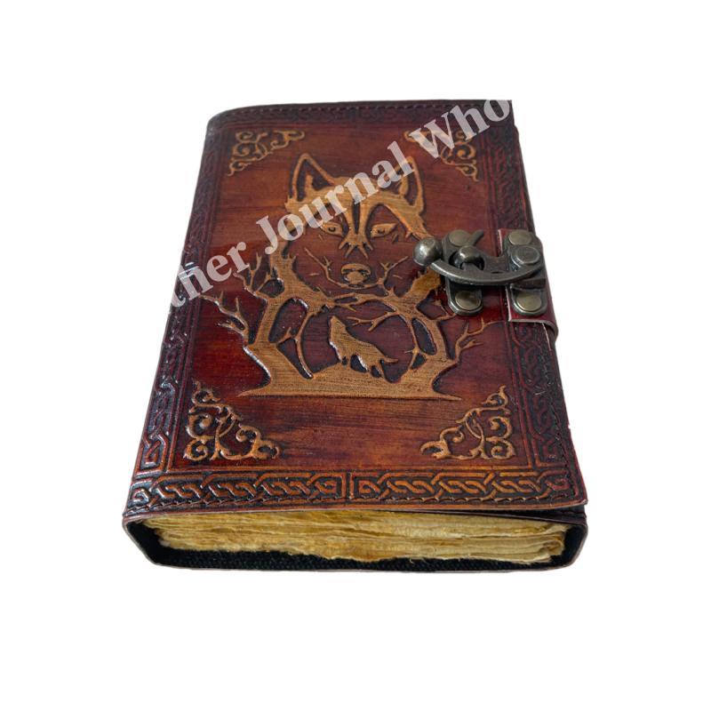 Wolf Journal Embossed Vintage Leather Notebook deckle paper Diary Manual Account yellow Book Wholesale Gift Set planner