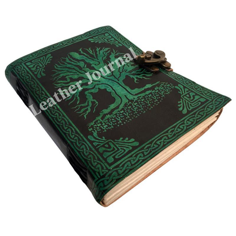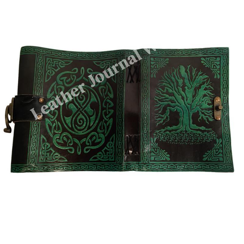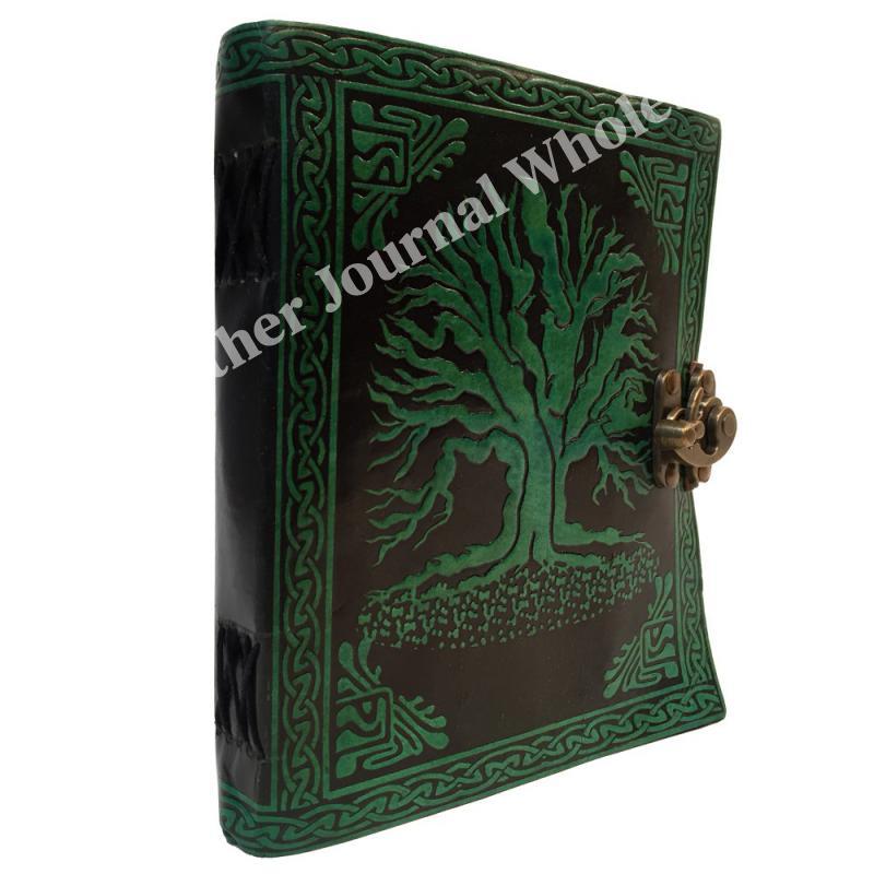 Workbook Journal Refill Paper Genuine Leather Handmade Recycle Paper notebook Handmade Eco Tree Of Life Balck With Geren Shdiws Colers Design Embossed Leather Journal Notebook